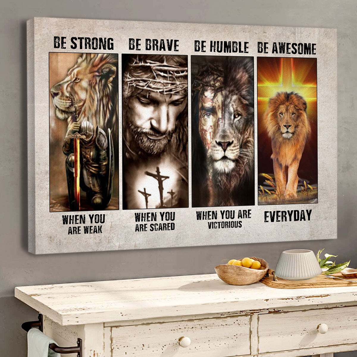 Be Strong And Believe In God – Lion And God Canvas AQ10