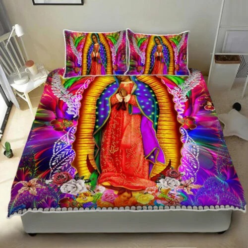 Beautiful Our Lady Of Guadalupe Quilt Bedding Set