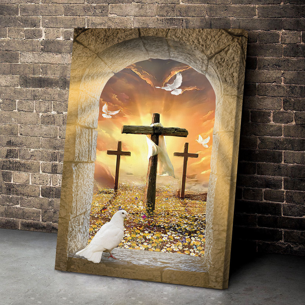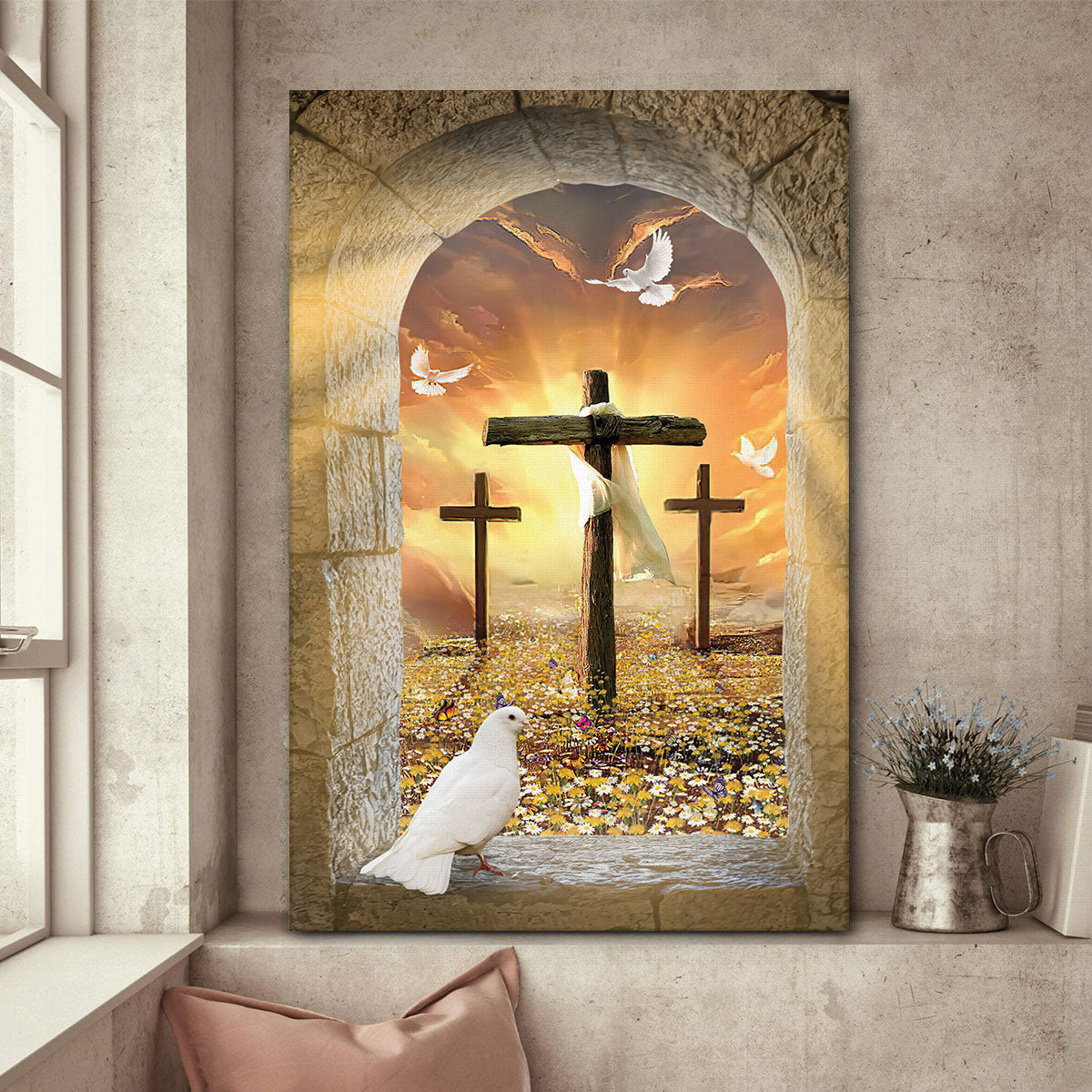 Beautiful Pigeon And Cross Canvas HA281