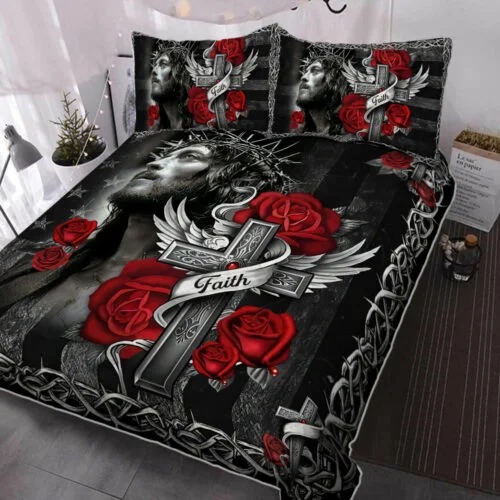 Christian Cross Quilt Bedding Set Jesus Faith Over Fear UXGO56BD