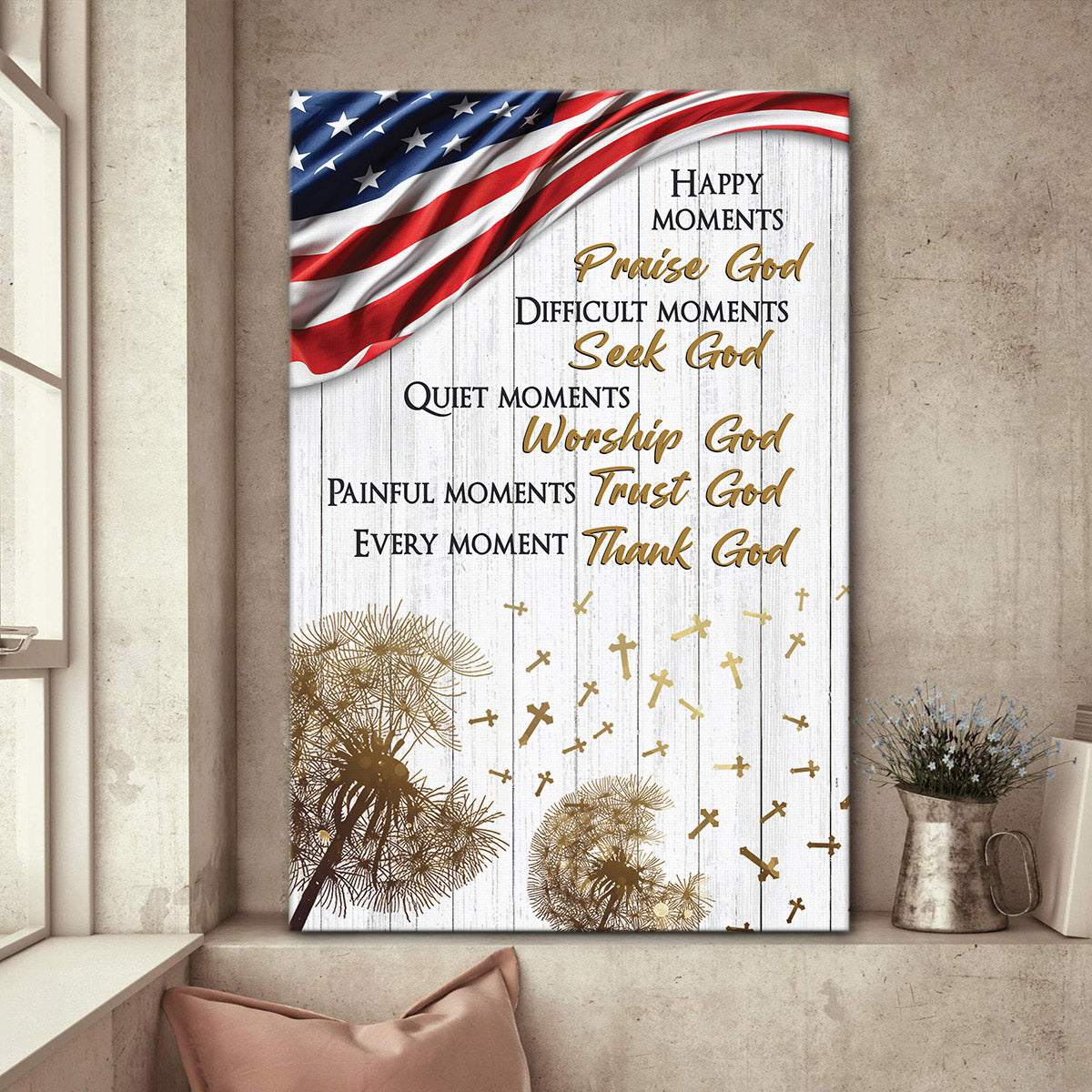 Every Moment Thank God – America Christian Canvas AA16
