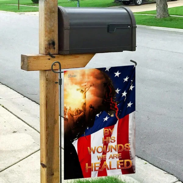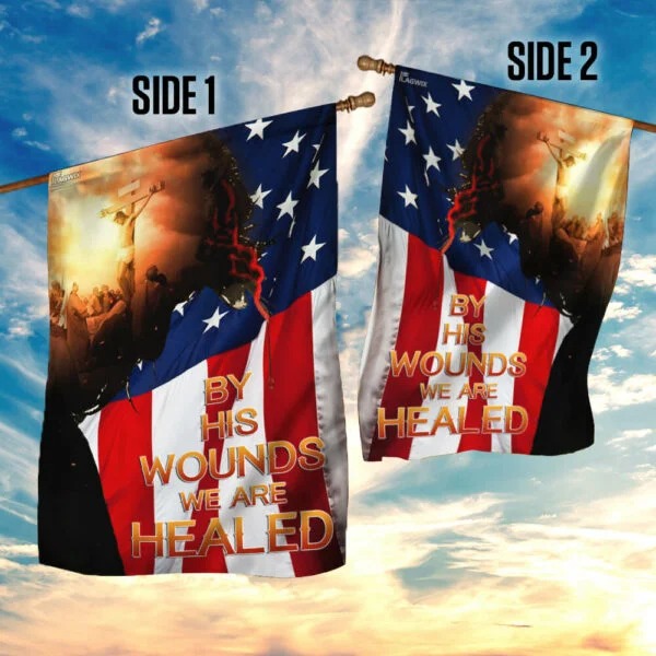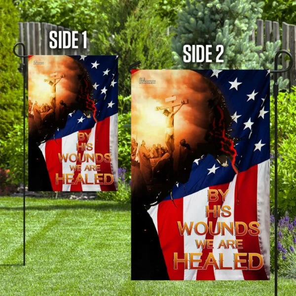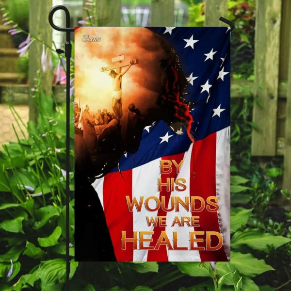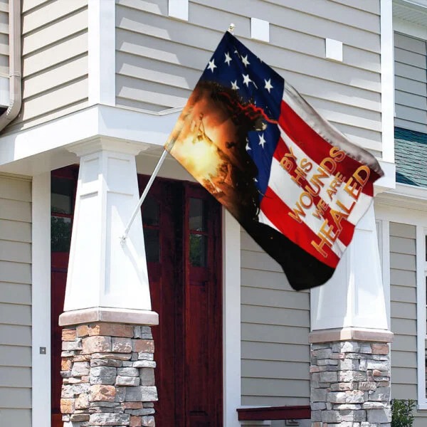God Jesus Christian By His Wounds We Are Healed American Flag