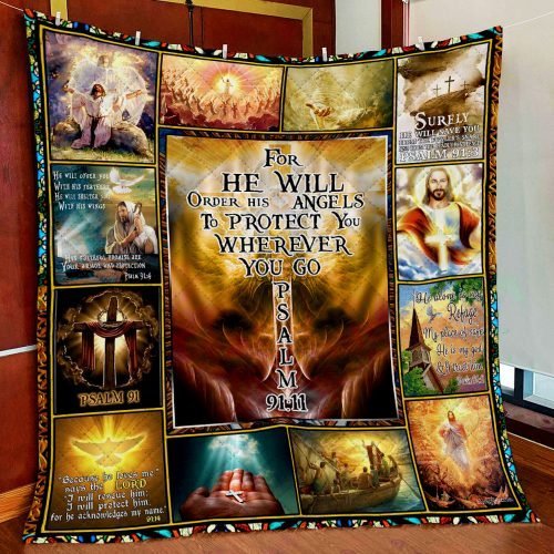 God Lord Jesus Christian Psalm 91 Quilt Blanket