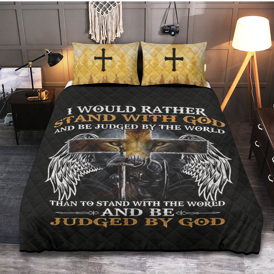 I would rather stand with God and be judged by the world than stand with the world and be judged by God Premium Quilt bedding set