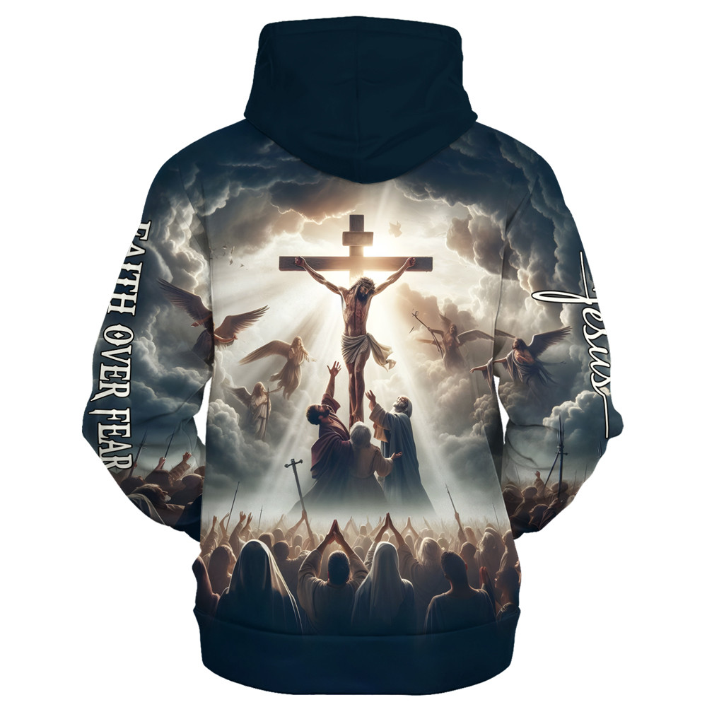 The high-definition heat-dye printing ensures the inspirational “Faith Over Fear” message remains vivid and long-lasting—reminding you to trust in Jesus above all circumstances. Unlike regular hoodies, this faith apparel is wrinkle-resistant, shrink-resistant, and mildew-resistant, making it both stylish and reliable season after season.