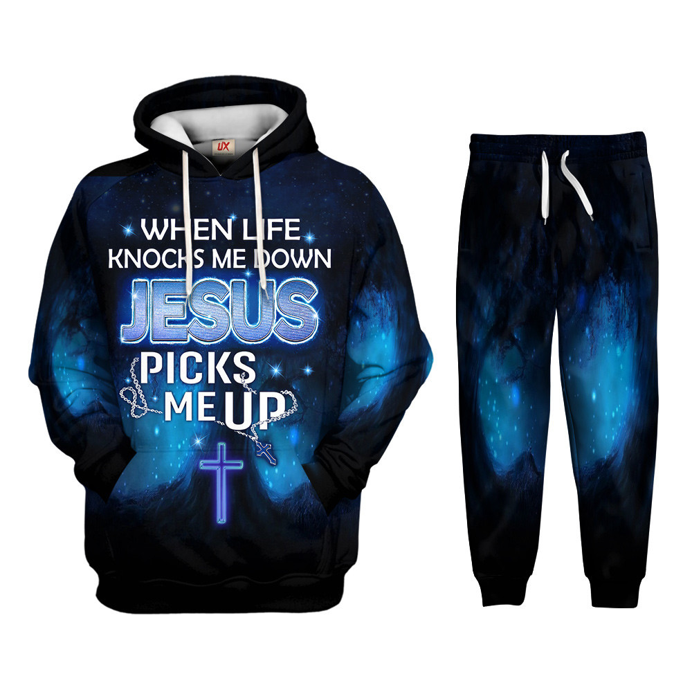 Find strength and warmth in the When Life Knocks Me Down Jesus Picks Me Up Microfleece Hoodie/Zip Hoodie. Made from premium 100% polyester with a soft inner microfleece lining, this hoodie provides a cotton-like hand feel that is smooth, warm, and ultra-comfortable for everyday wear.