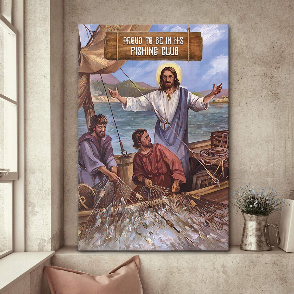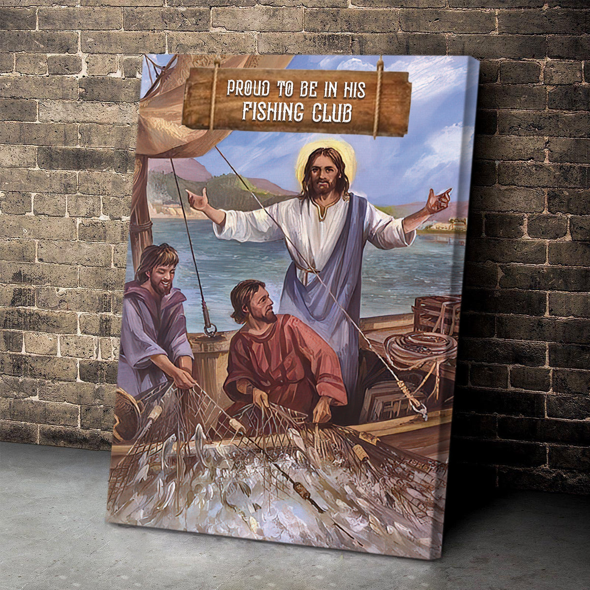 Proud To Be In His Fishing Club – Unique Jesus Canvas HQ21