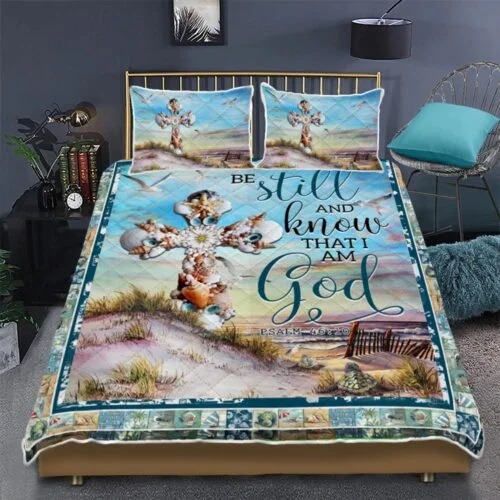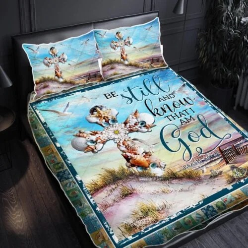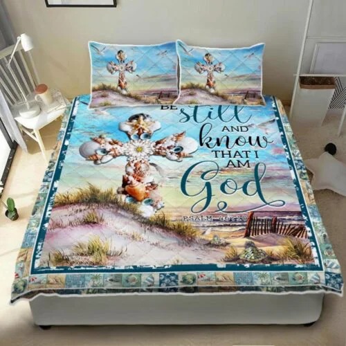 Seashells Cross. Be Still And Know That I Am God. Beach Quilt Bedding Set