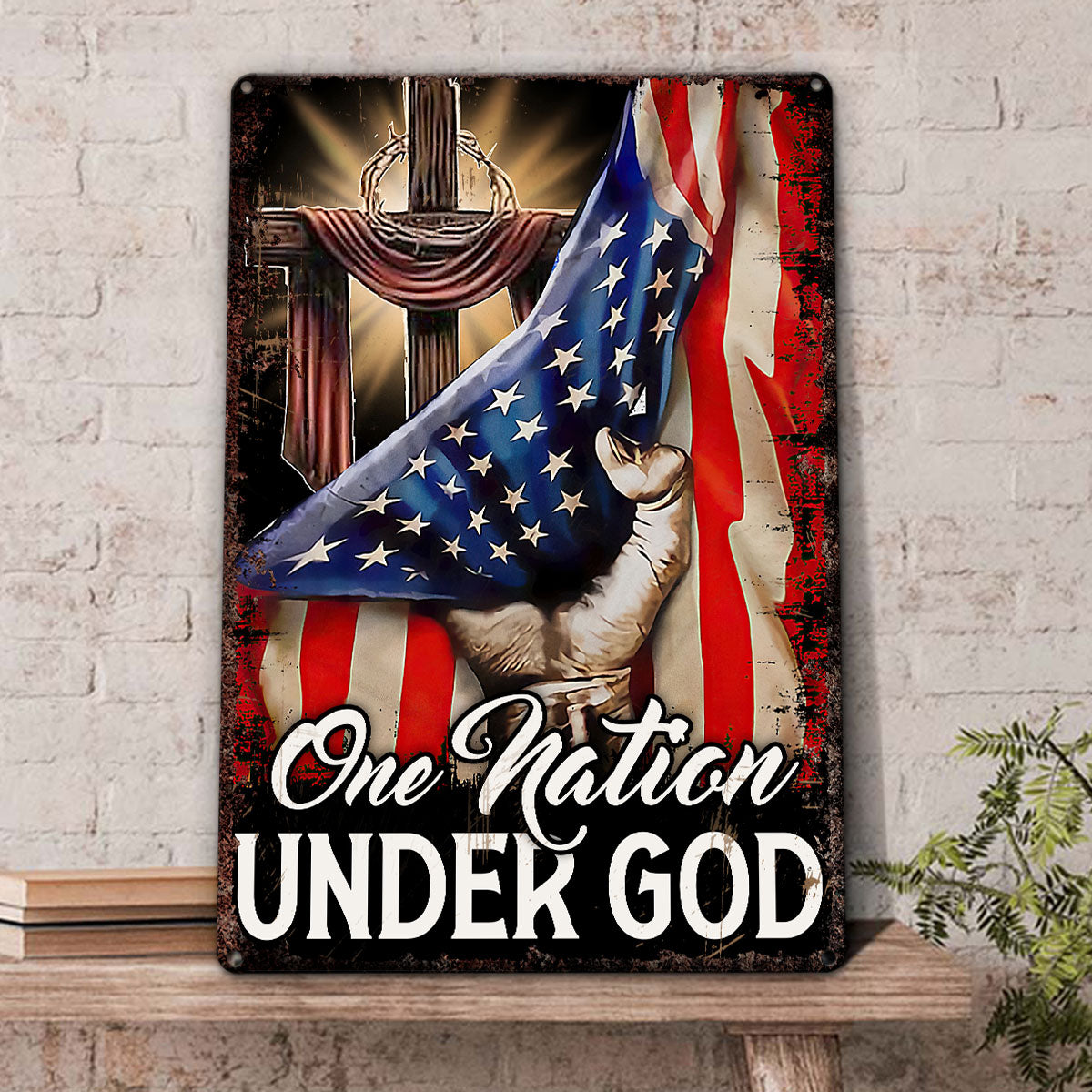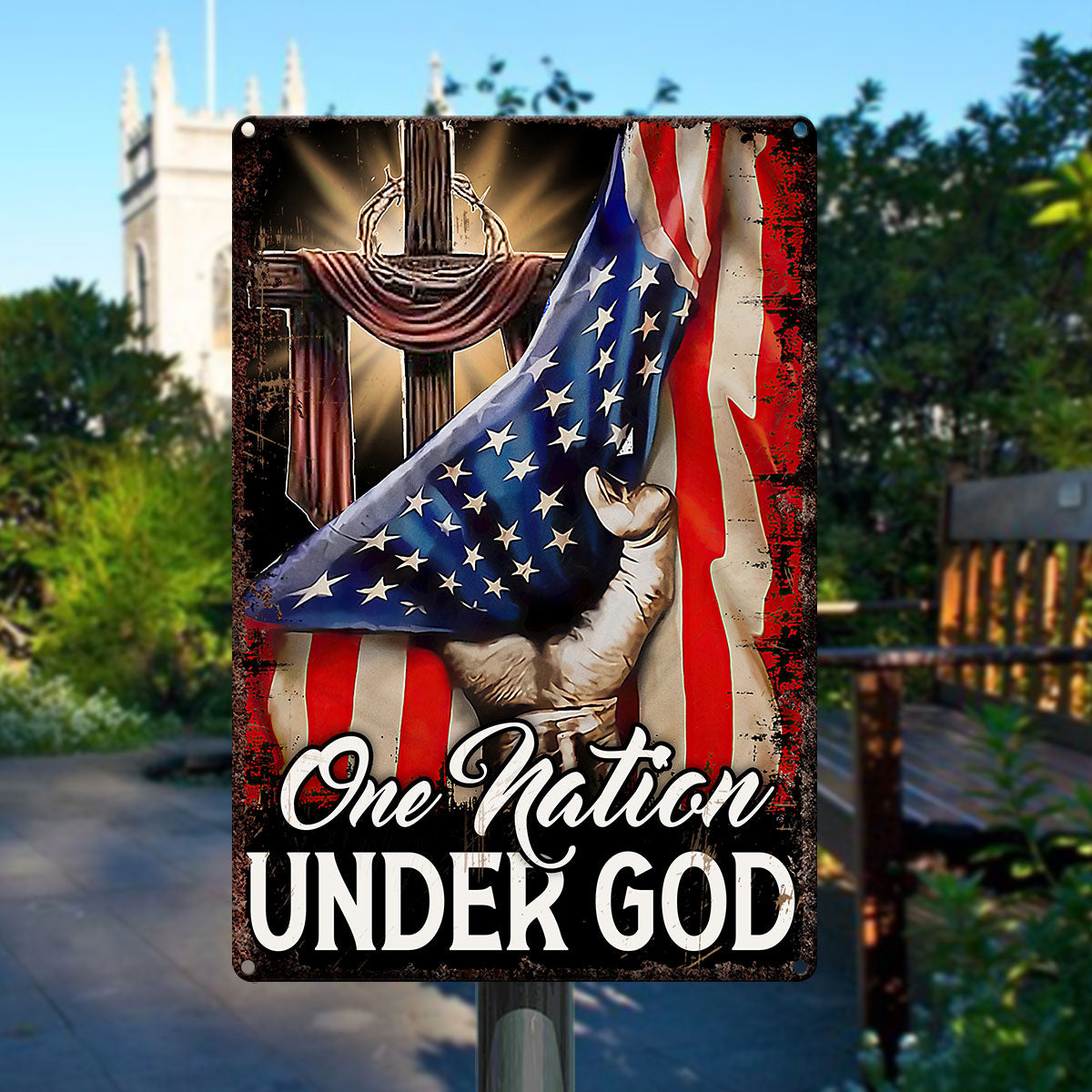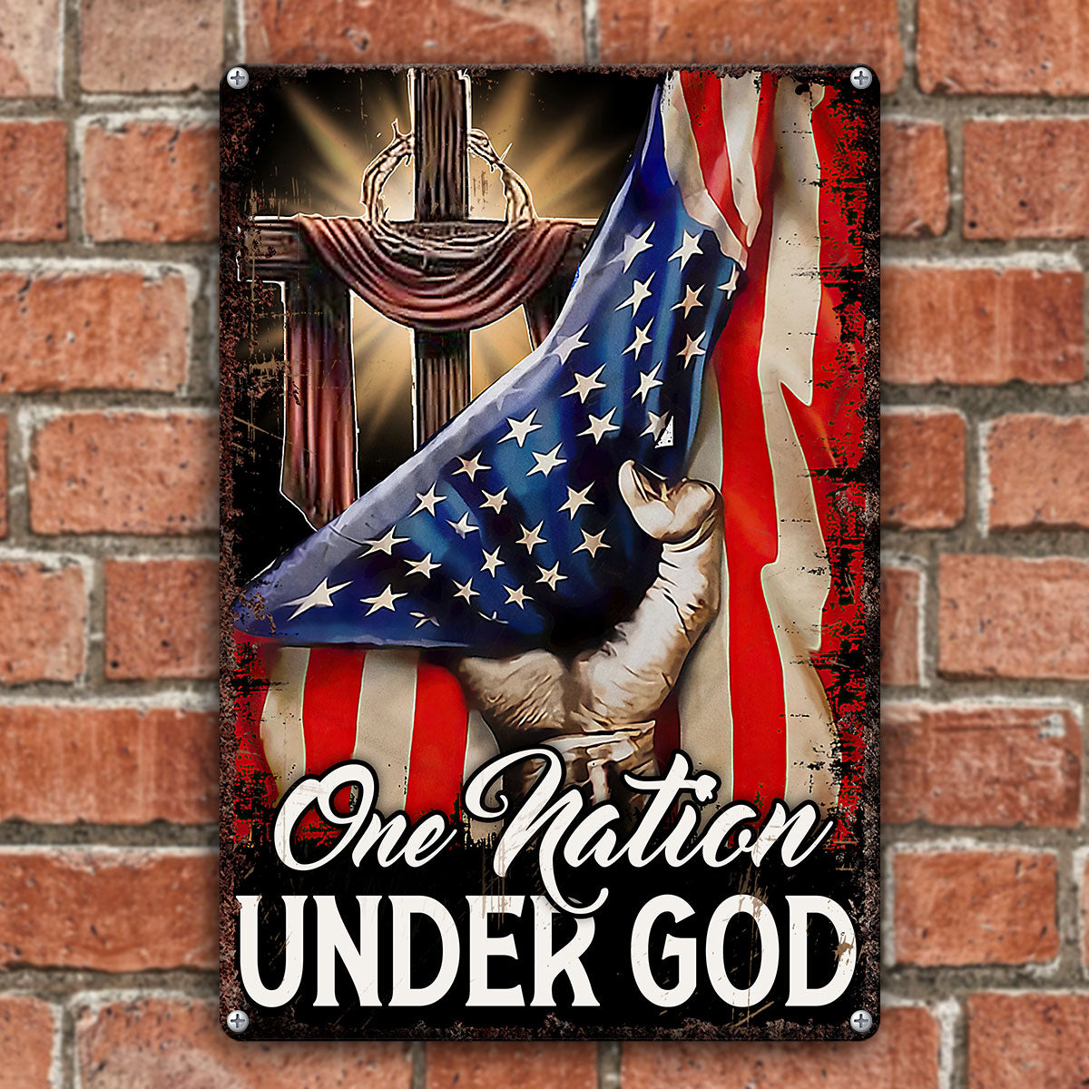 UX Jesus Cross Metal Sign One Nation Under God Religious Gift UXGO07-MS