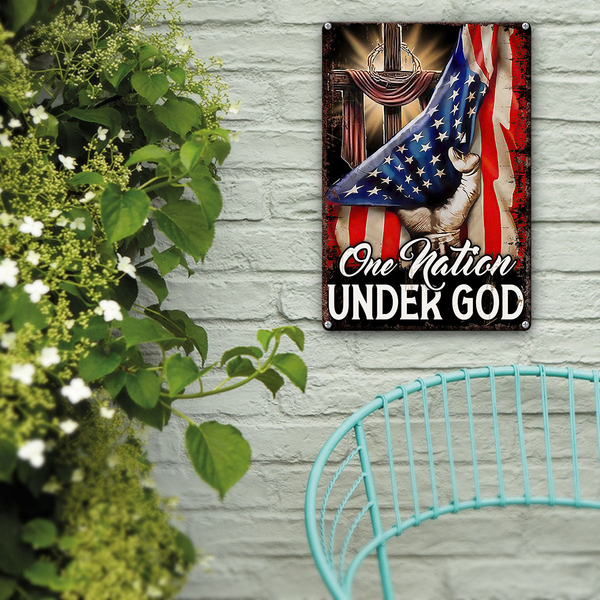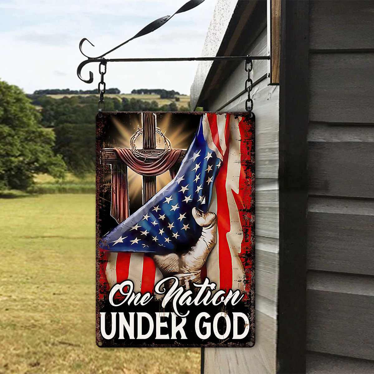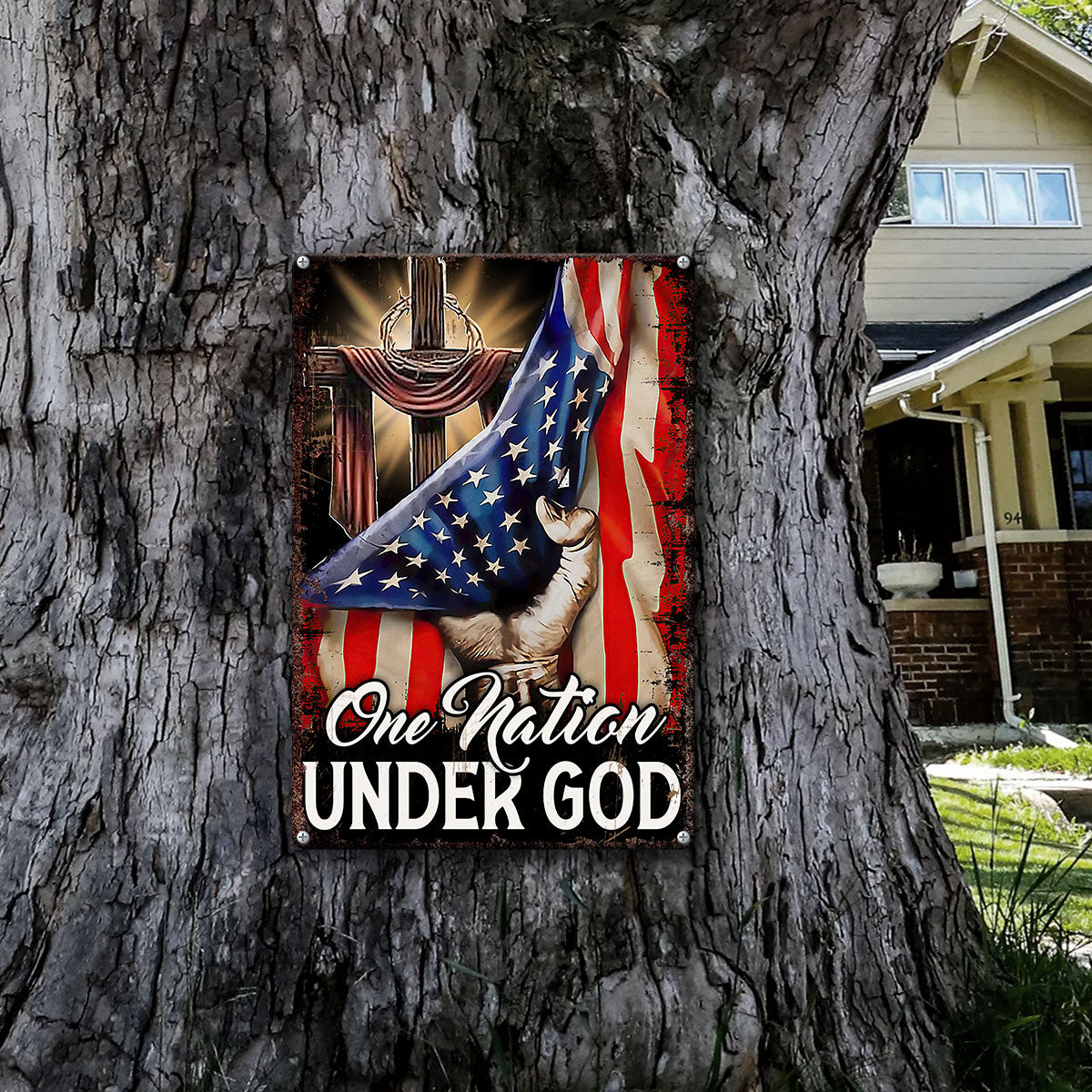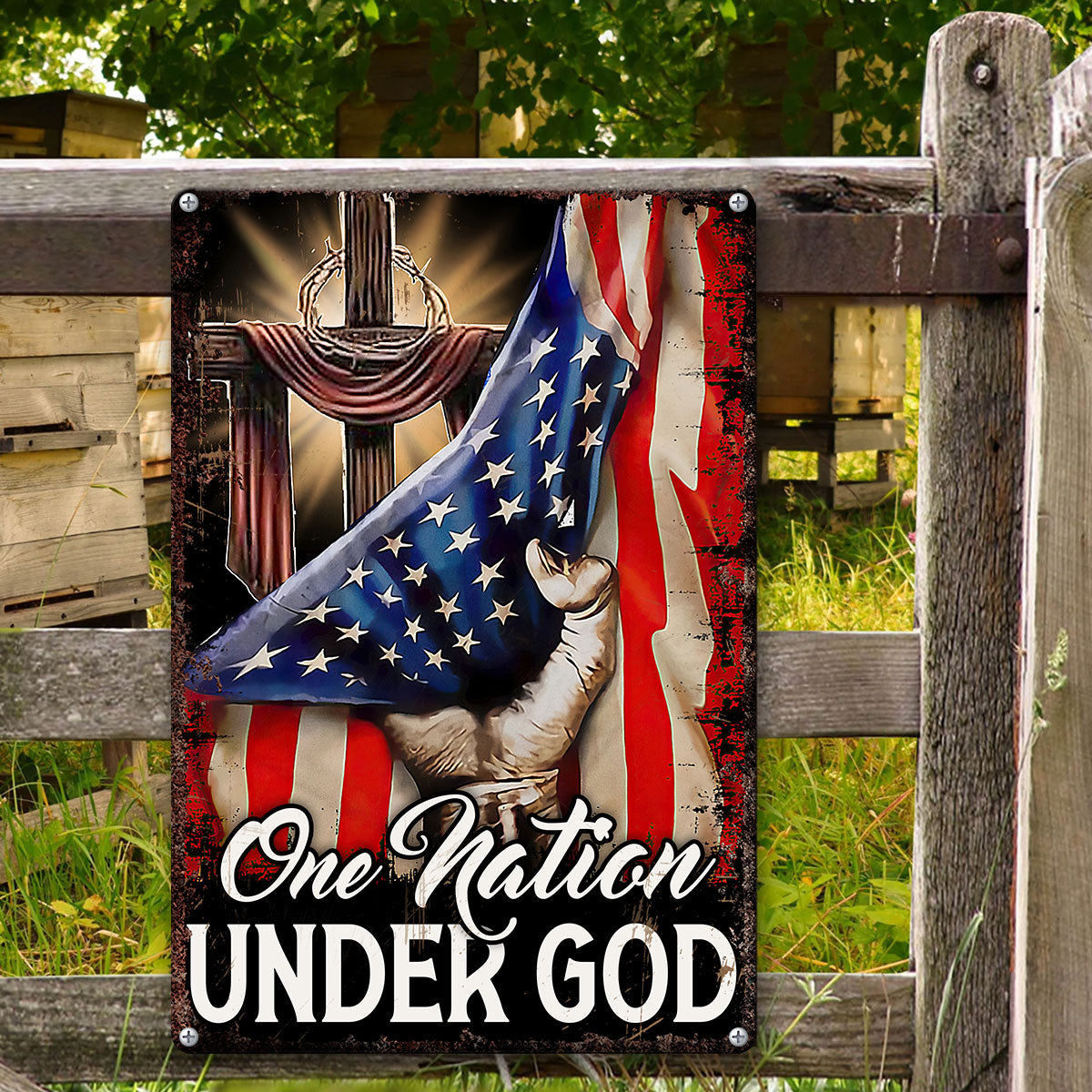 UX Jesus Cross Metal Sign One Nation Under God Religious Gift UXGO07-MS