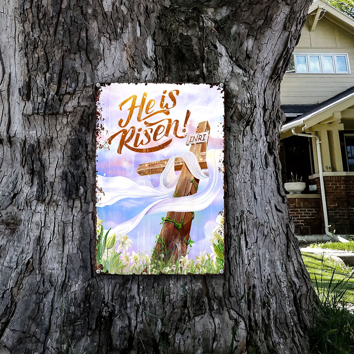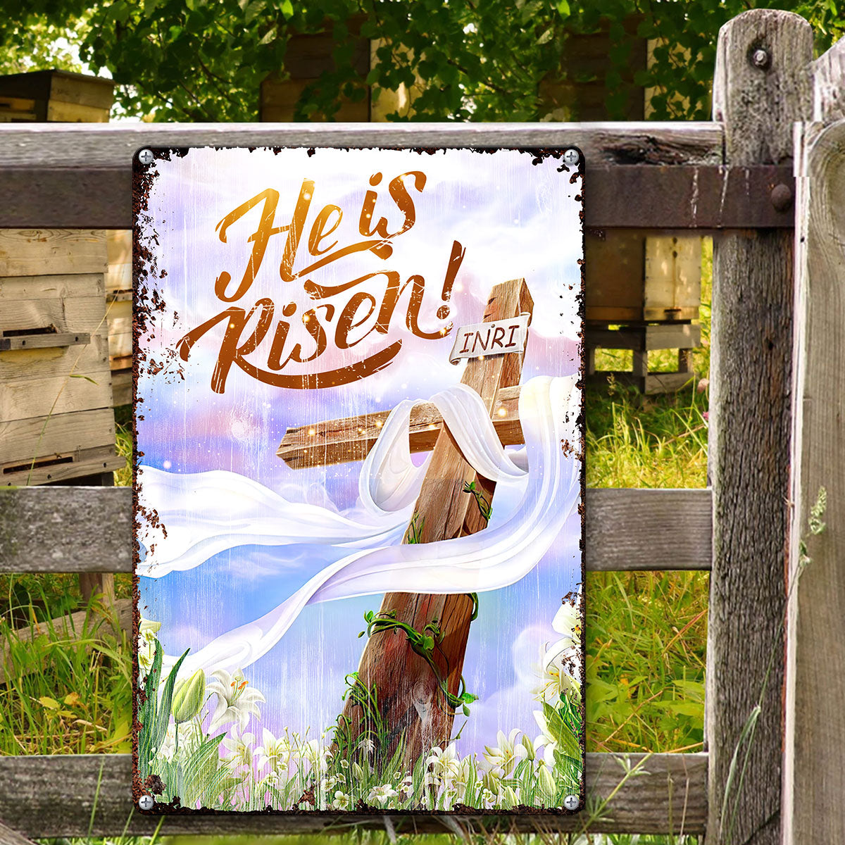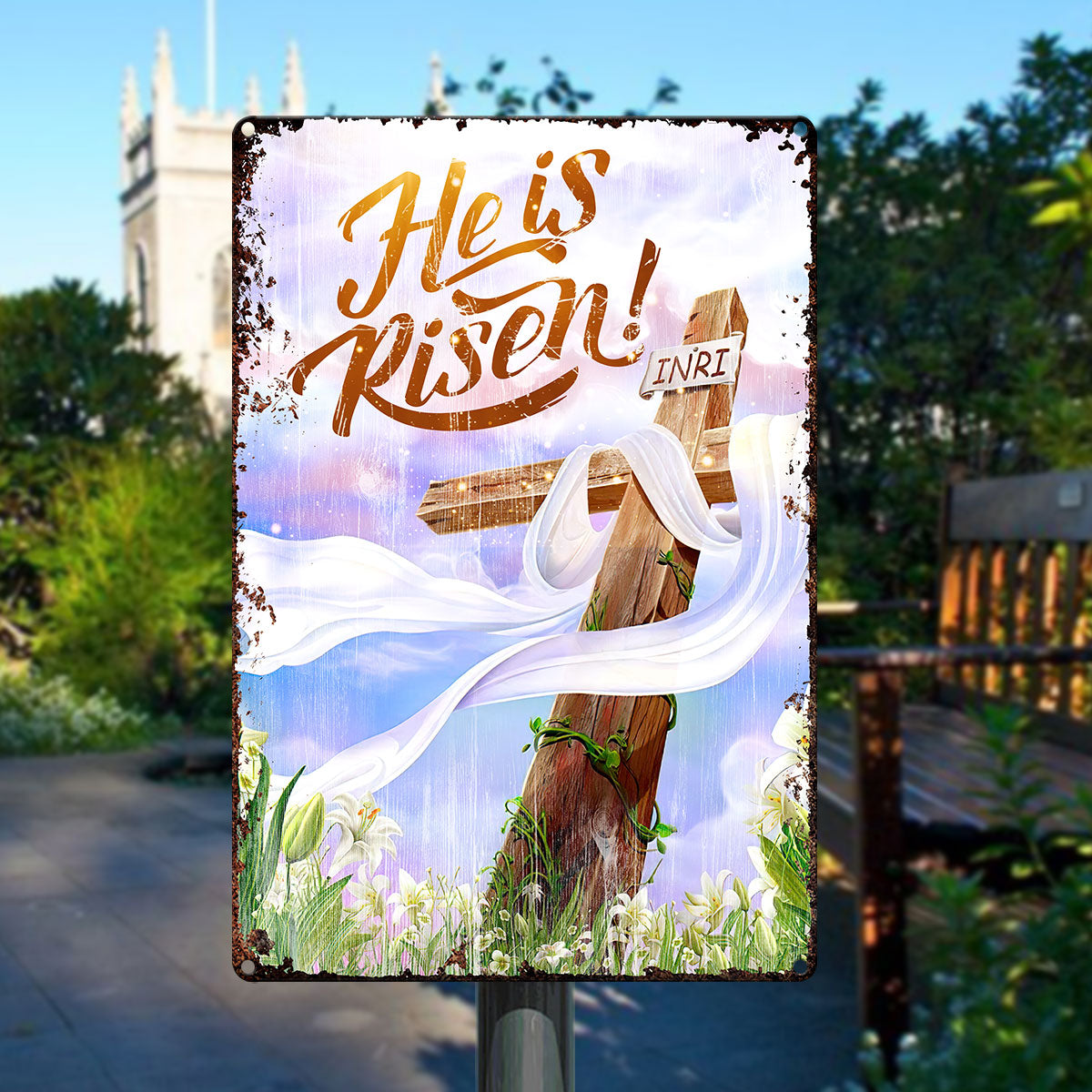 UX Jesus  He Is Risen  Metal Sign  Cross  Lily NUM466