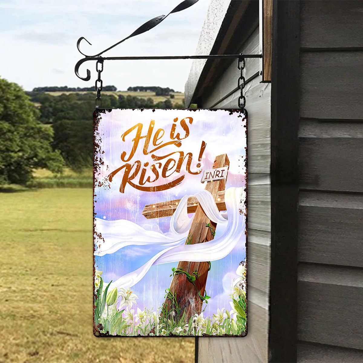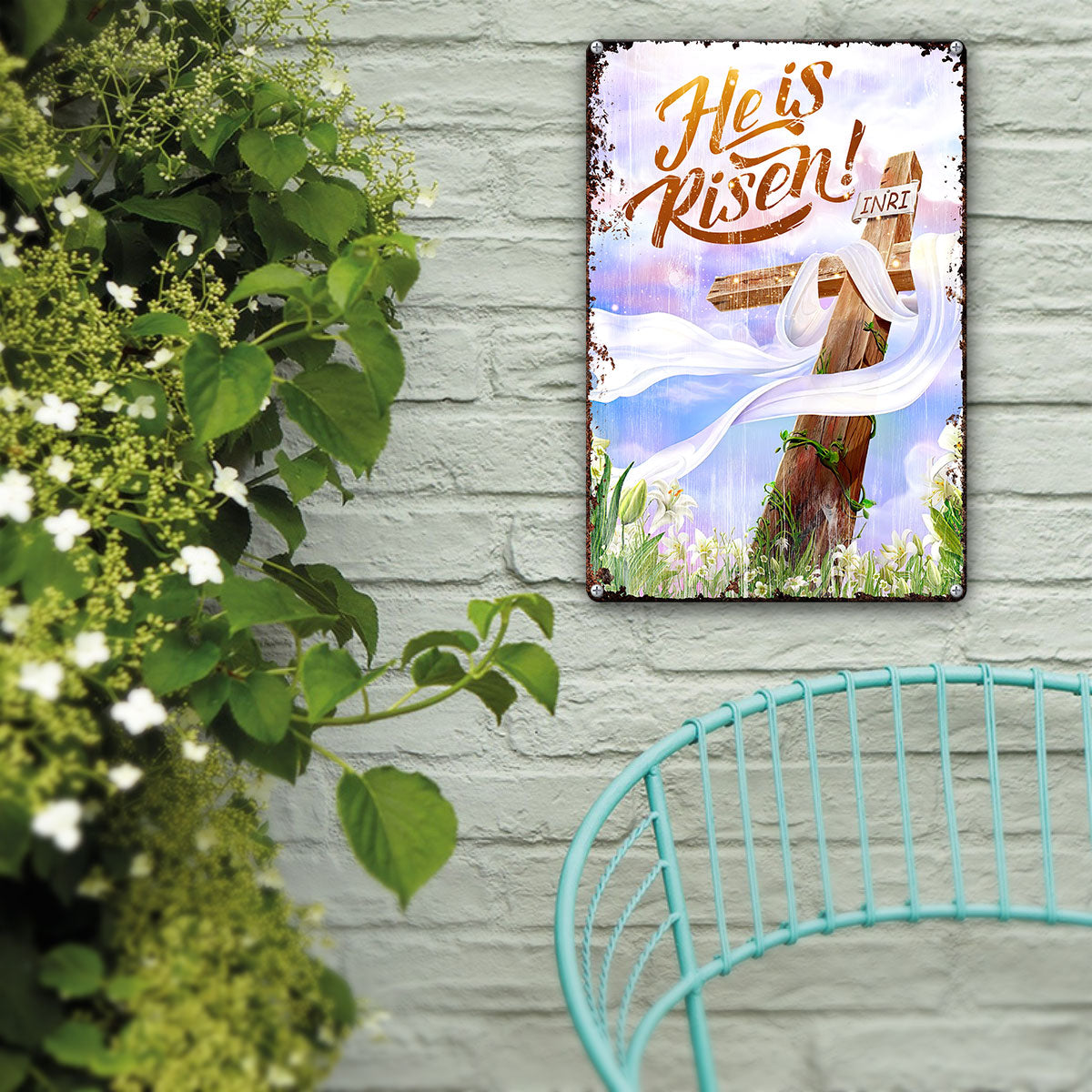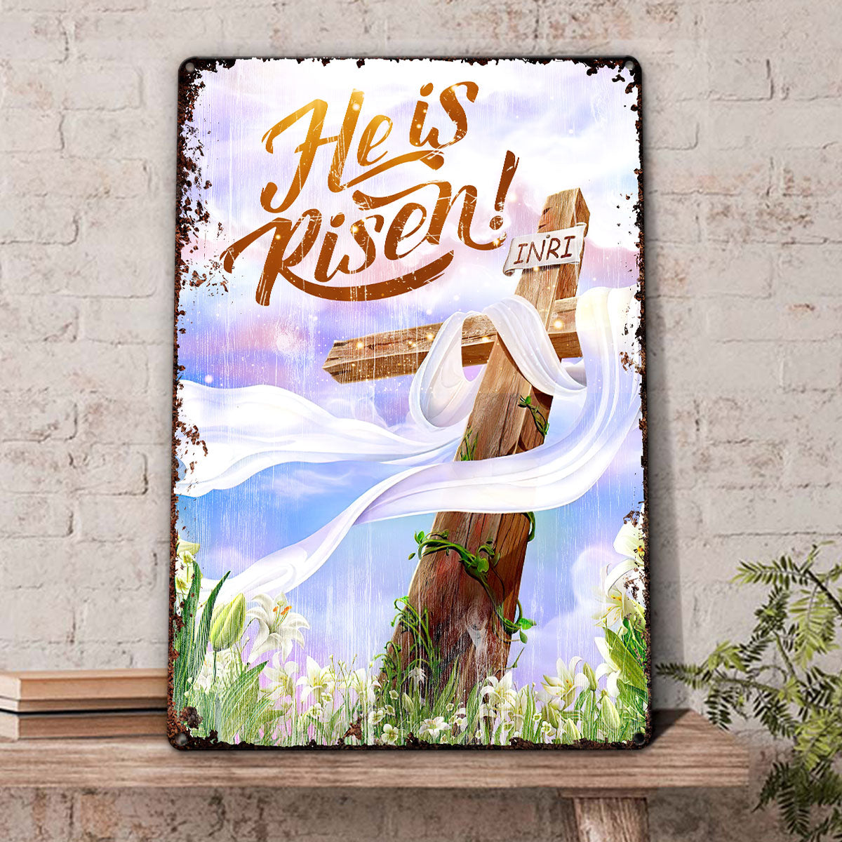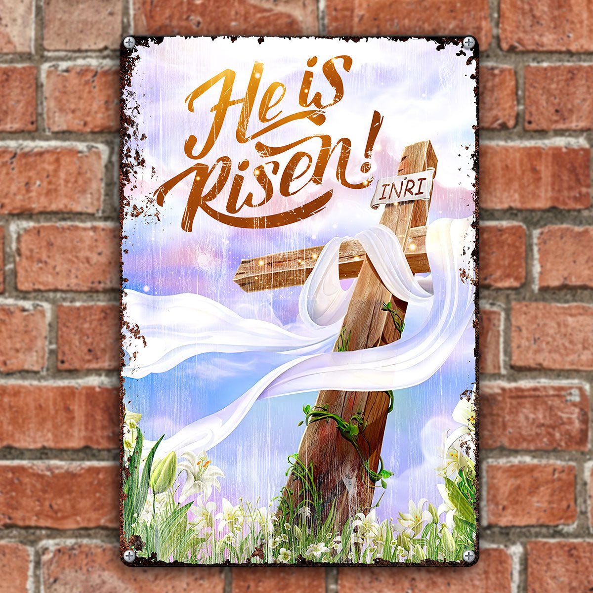 UX Jesus He Is Risen Metal Sign Cross Lily NUM466