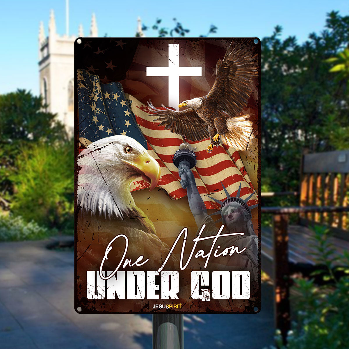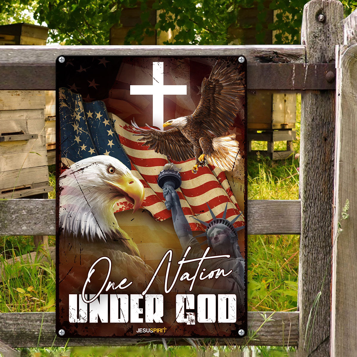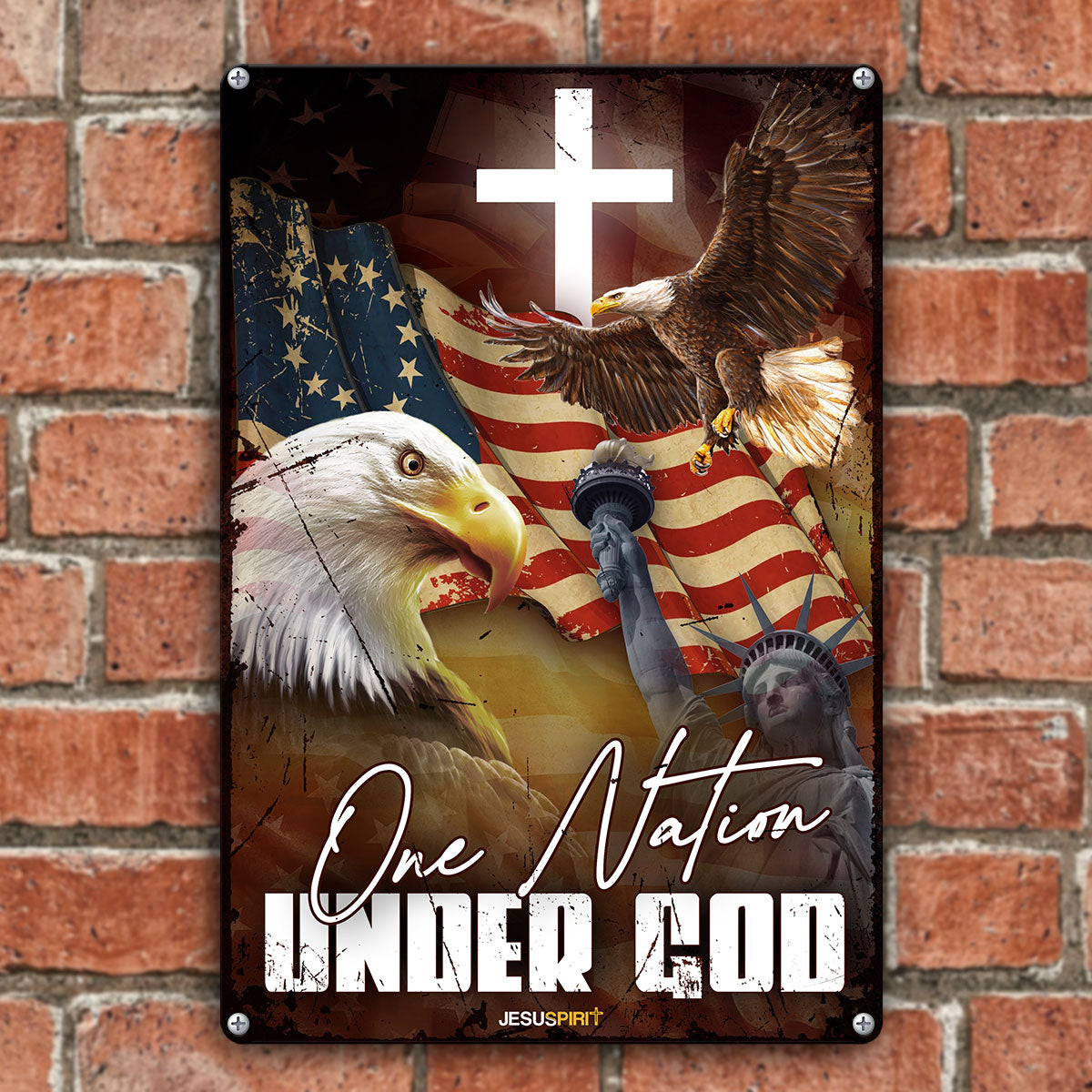 UX Jesus Metal Sign  Eagle And Cross  One Nation Under God  Gift For Christian  MS03