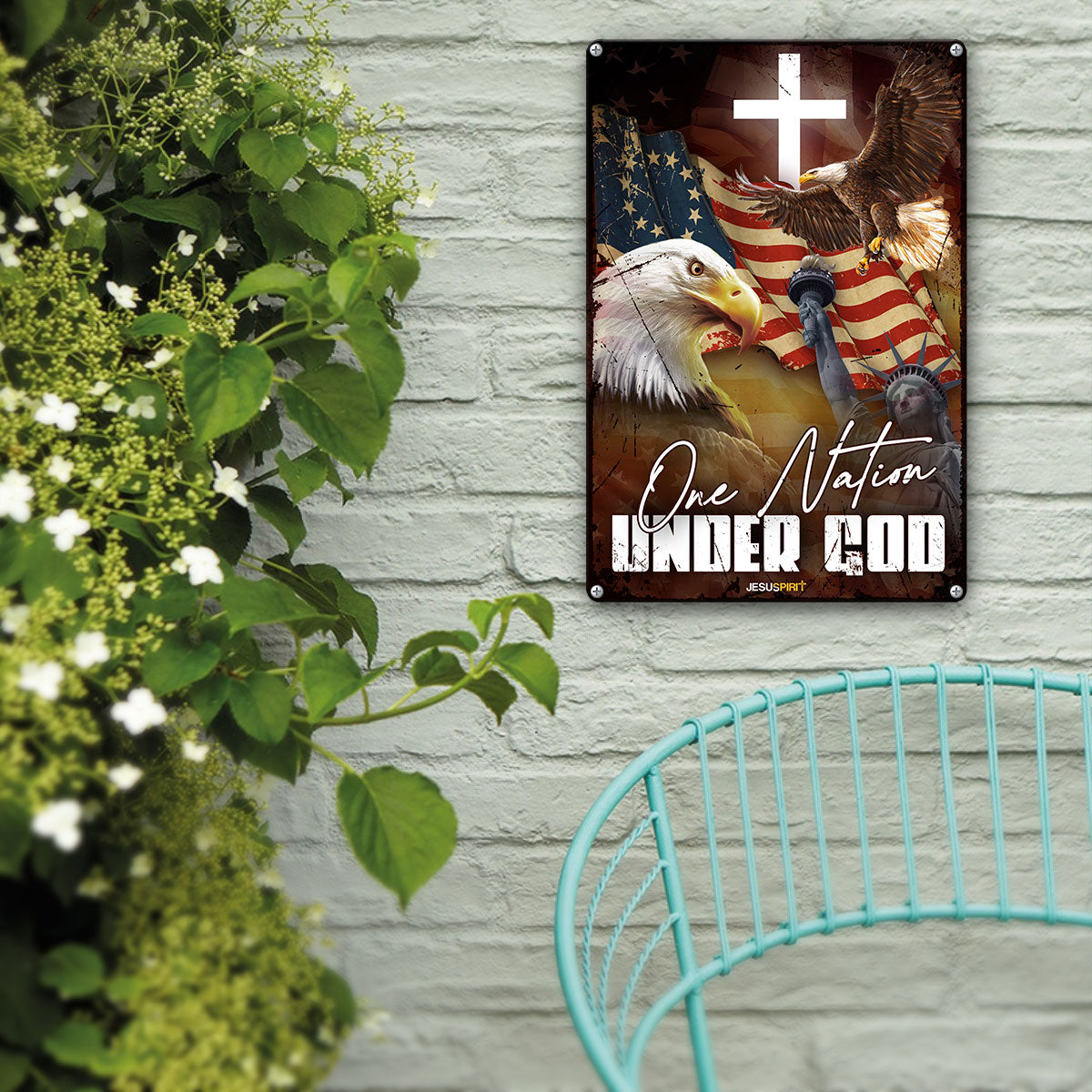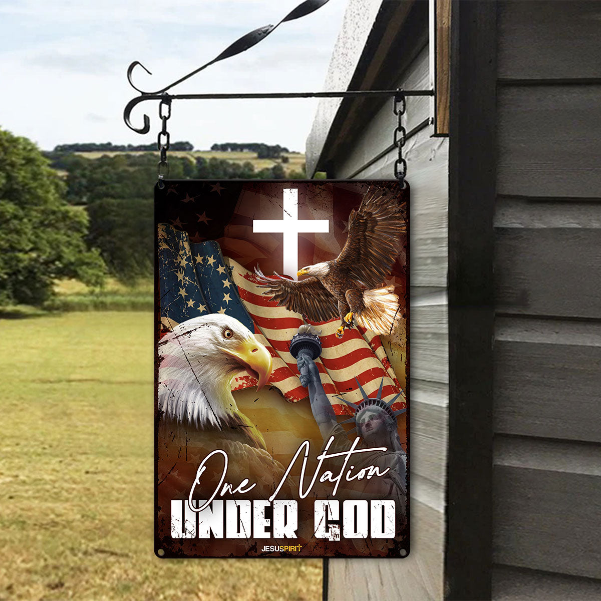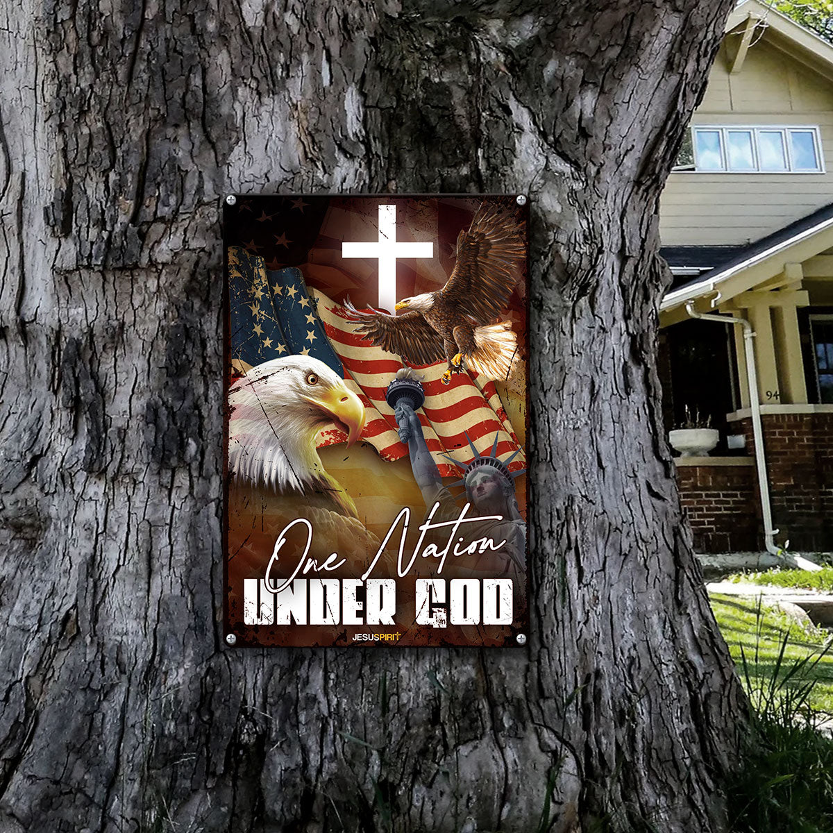 UX Jesus Metal Sign  Eagle And Cross  One Nation Under God  Gift For Christian  MS03