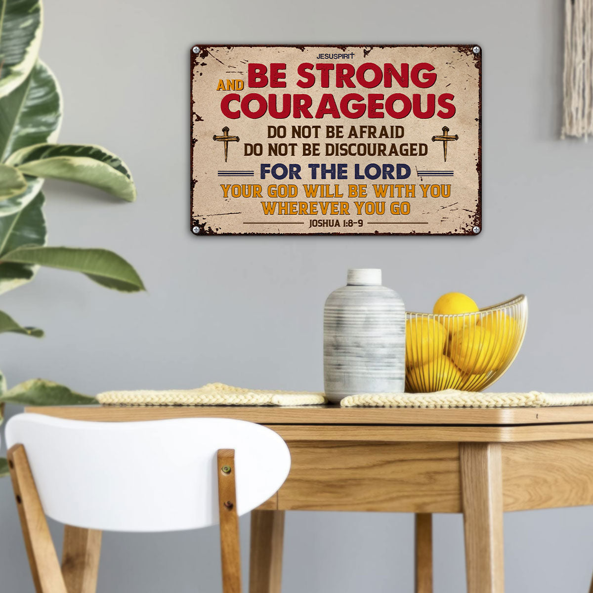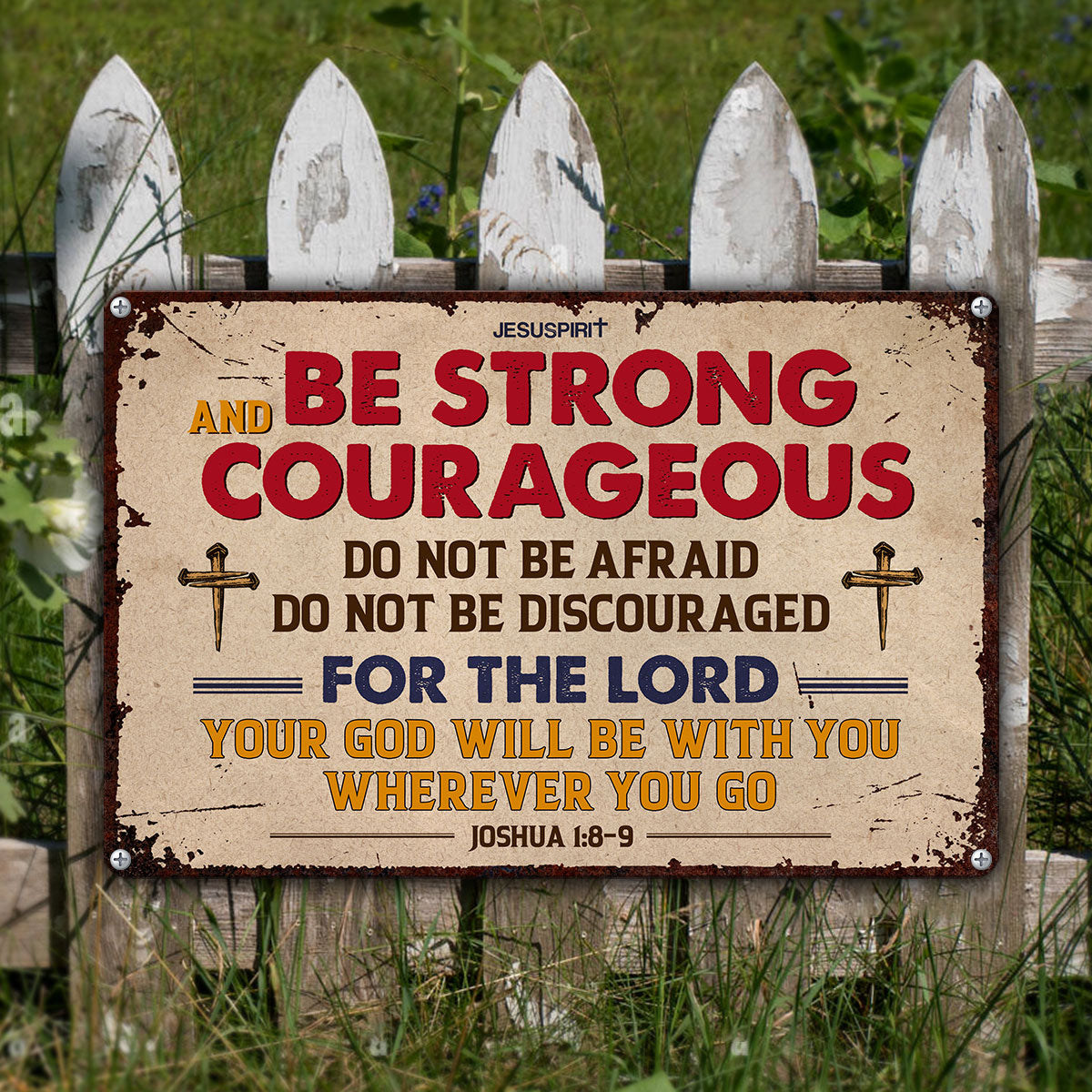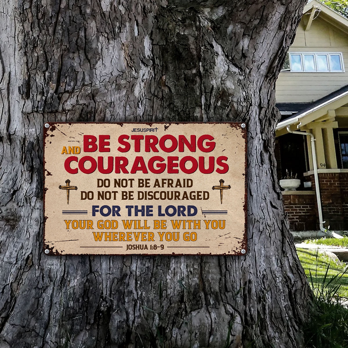 UX Jesus Metal Sign  Joshua 18-9  Be Strong And Courageous NUH461
