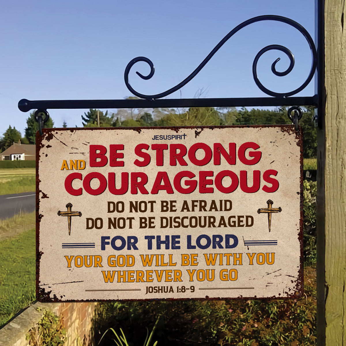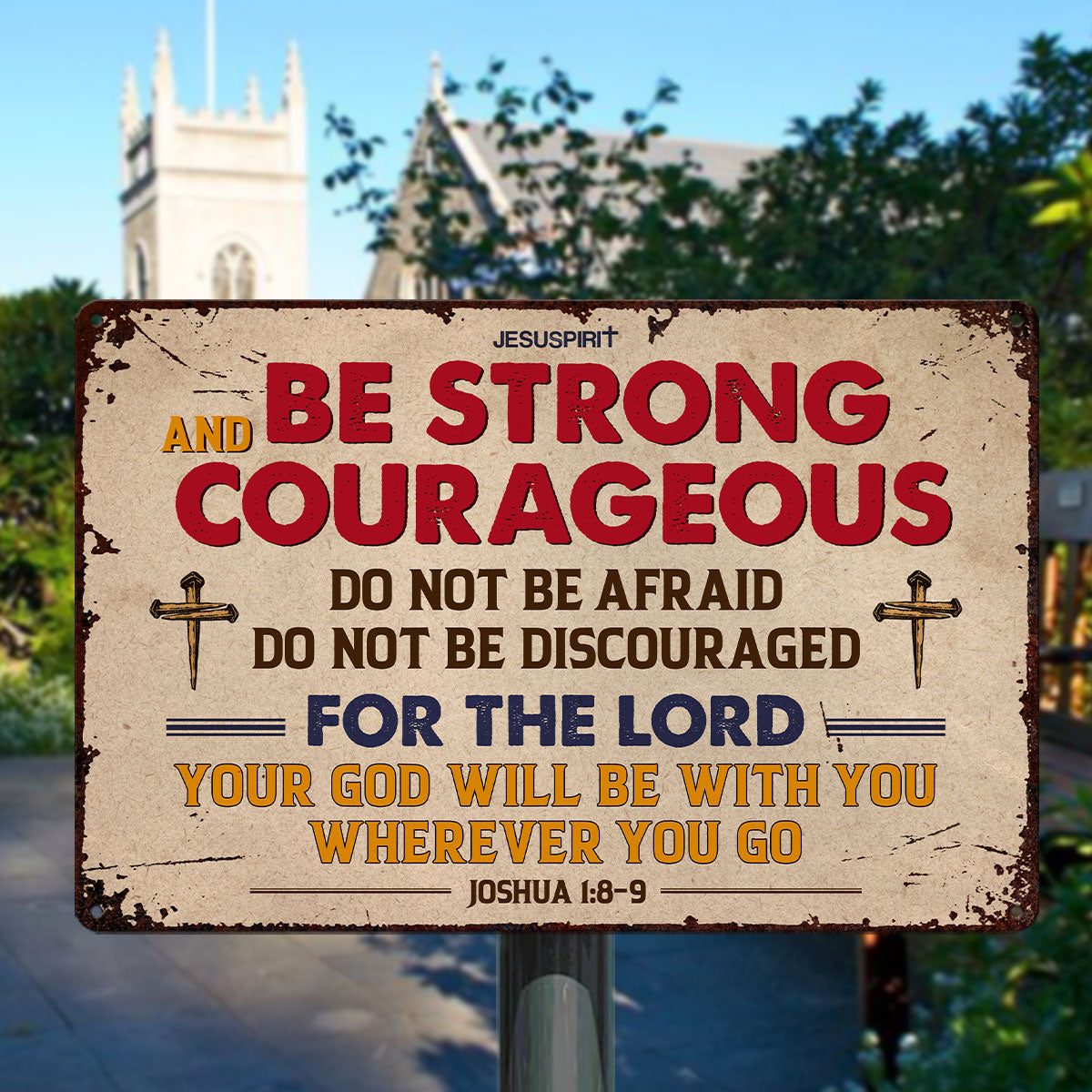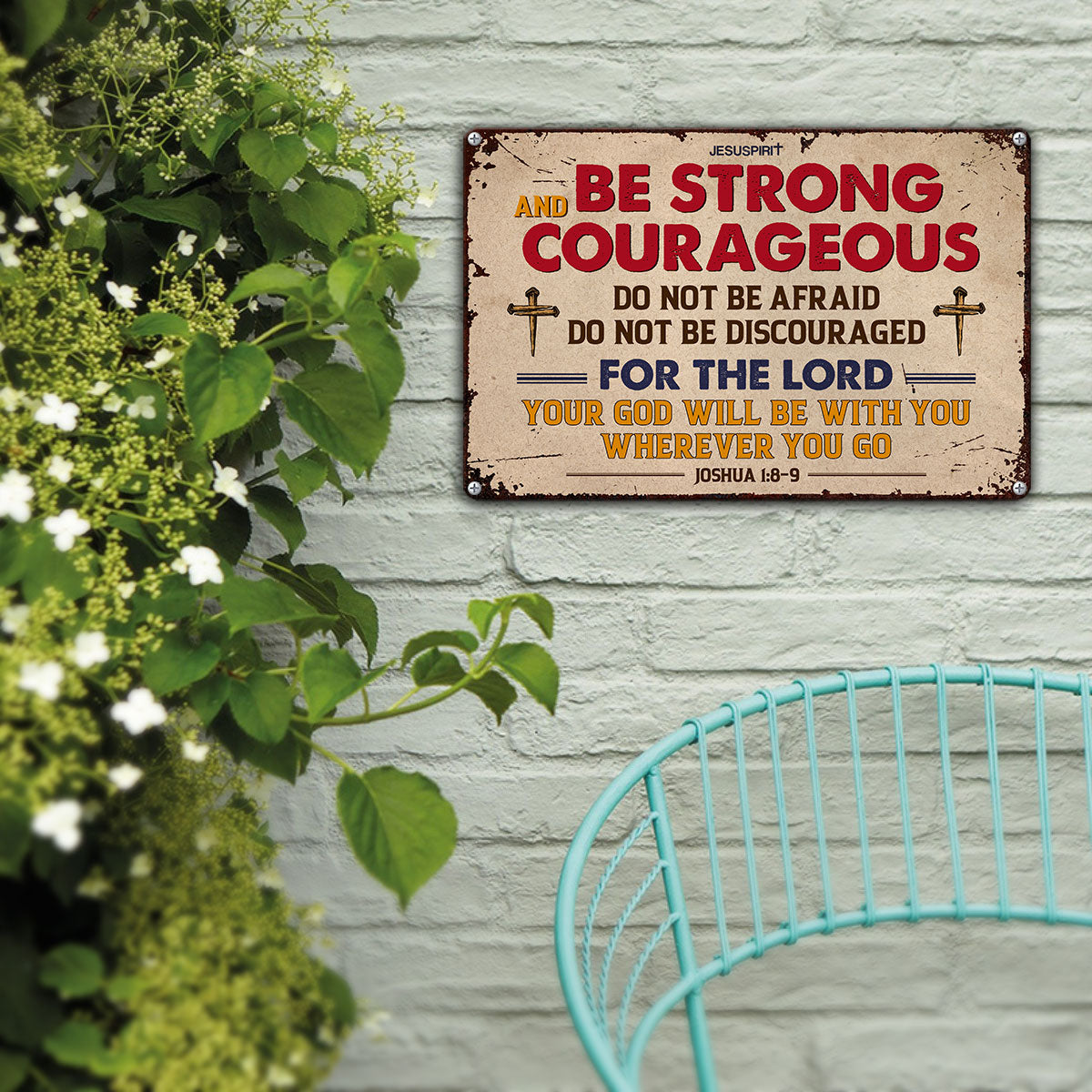 UX Jesus Metal Sign  Joshua 18-9  Be Strong And Courageous NUH461