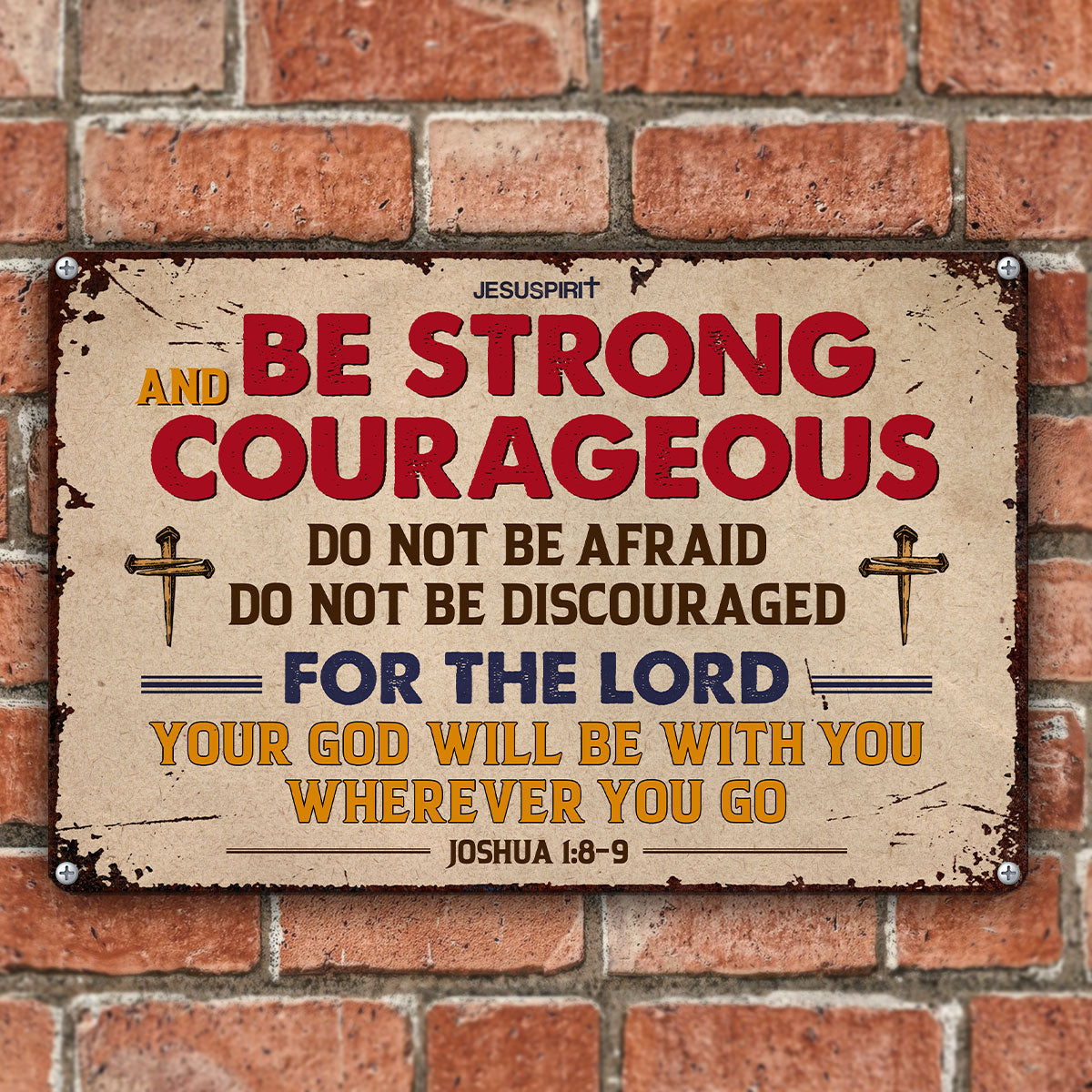 UX Jesus Metal Sign Joshua 18-9 Be Strong And Courageous NUH461
