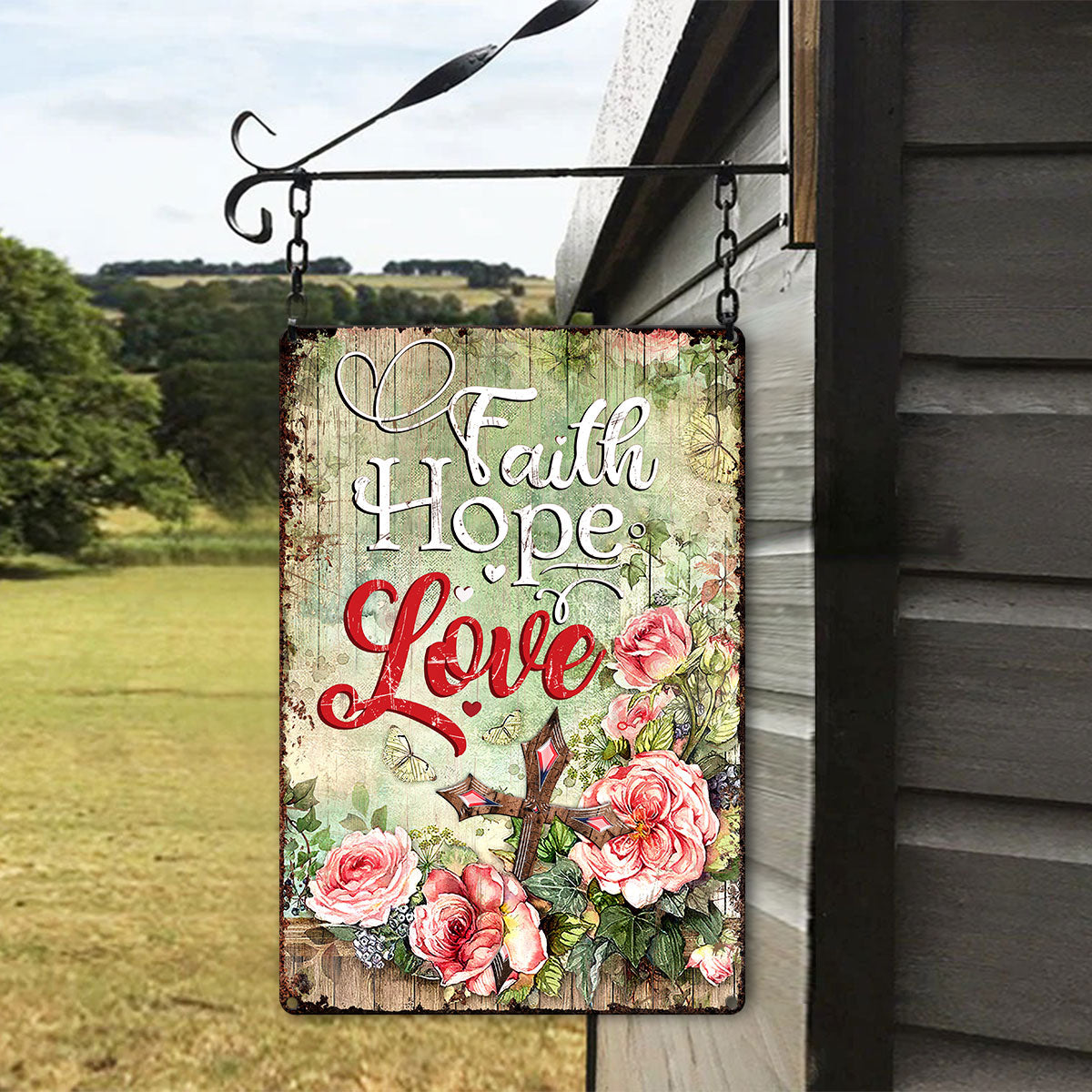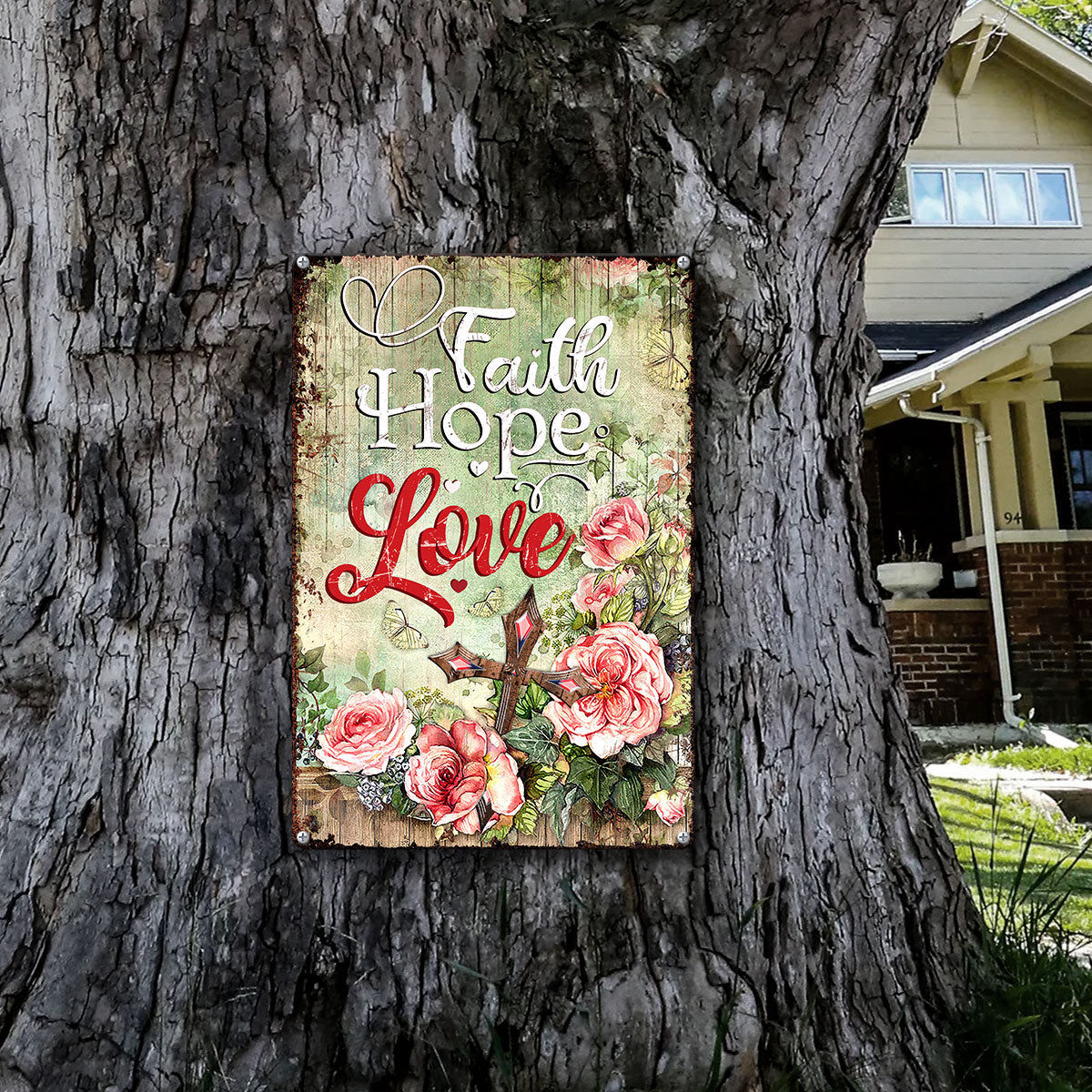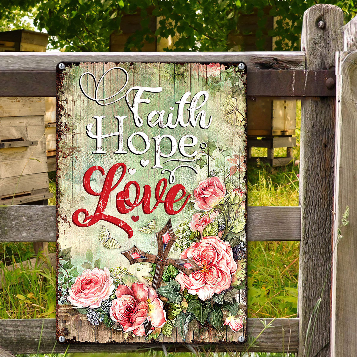 UX Jesus Metal Sign  Rose And Cross  Faith Hope Love NUM453