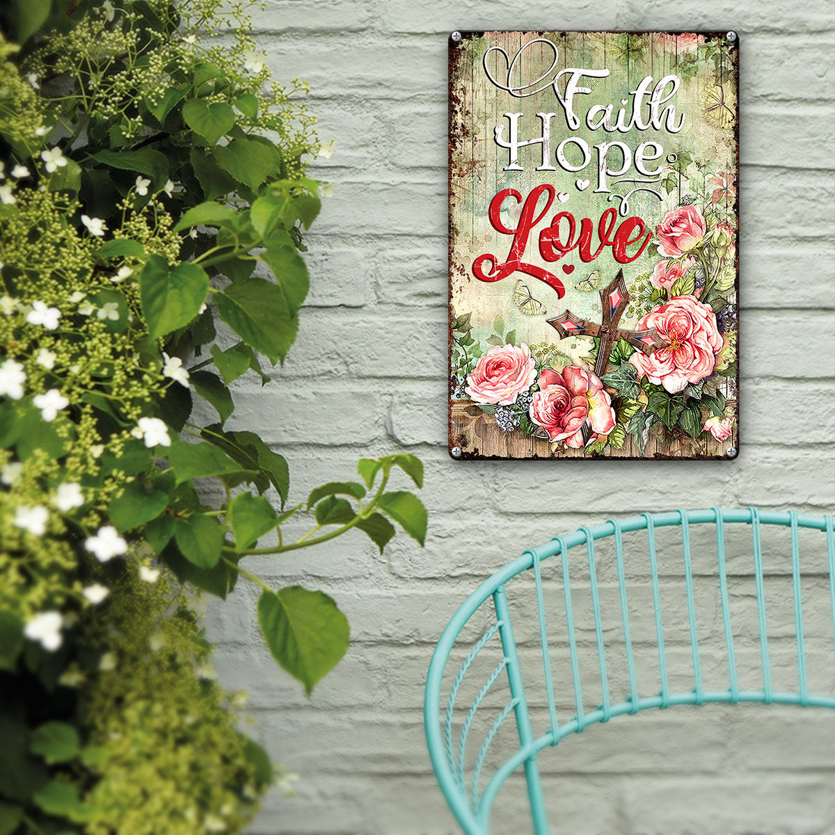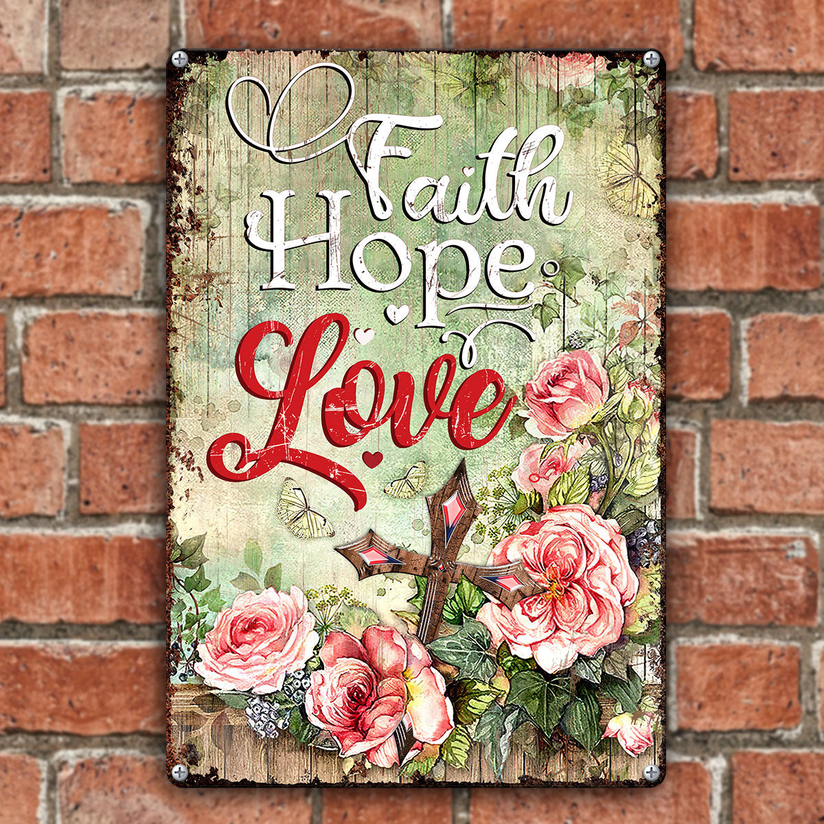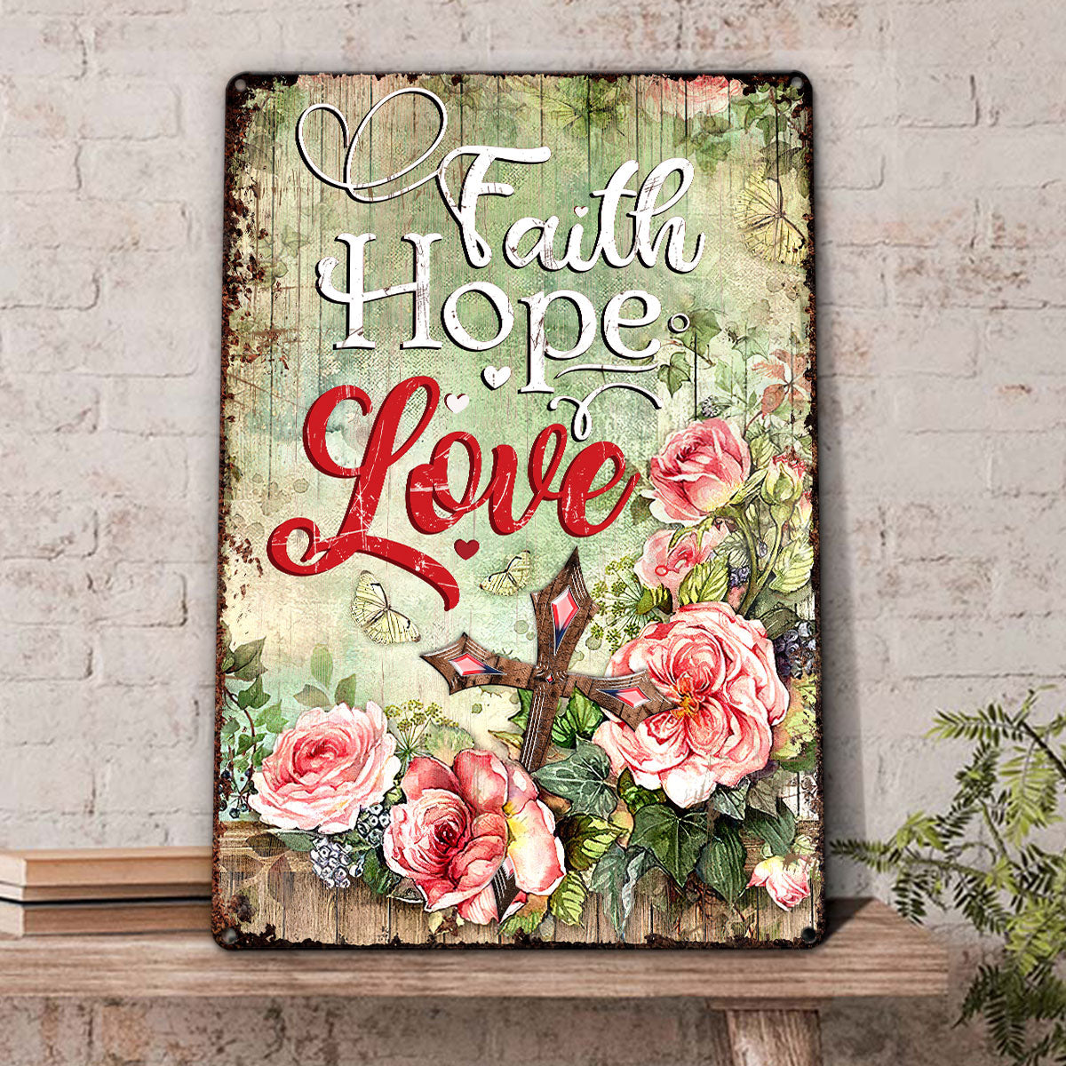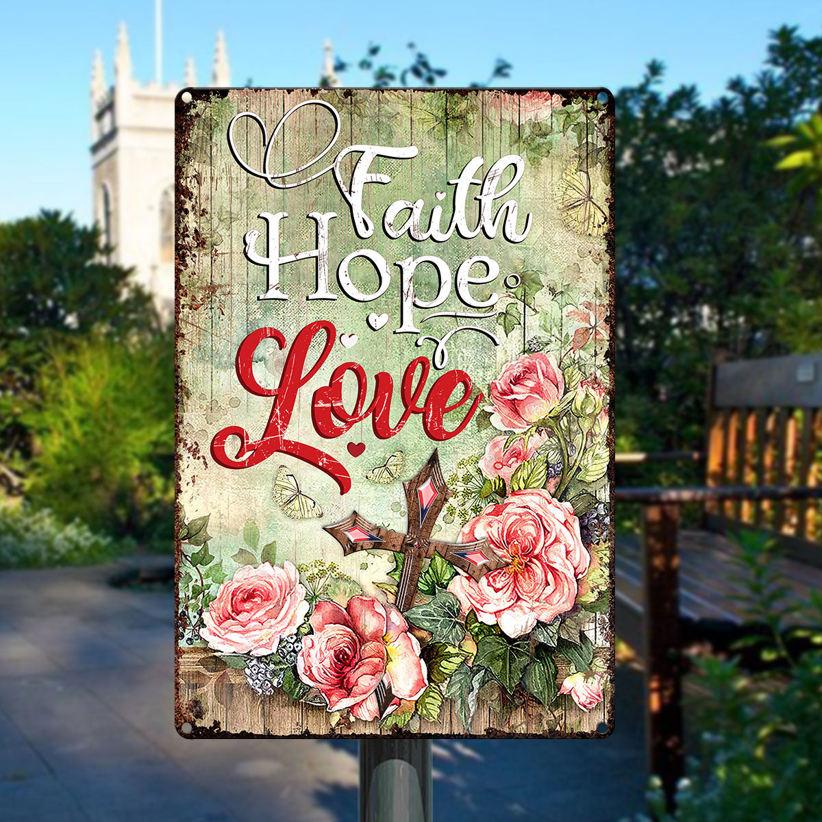 UX Jesus Metal Sign Rose And Cross Faith Hope Love NUM453