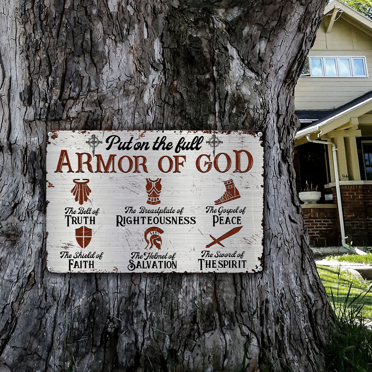 UX Jesus  Put On The Full Armor Of God  Special Metal Sign  Religious Gift NUM456