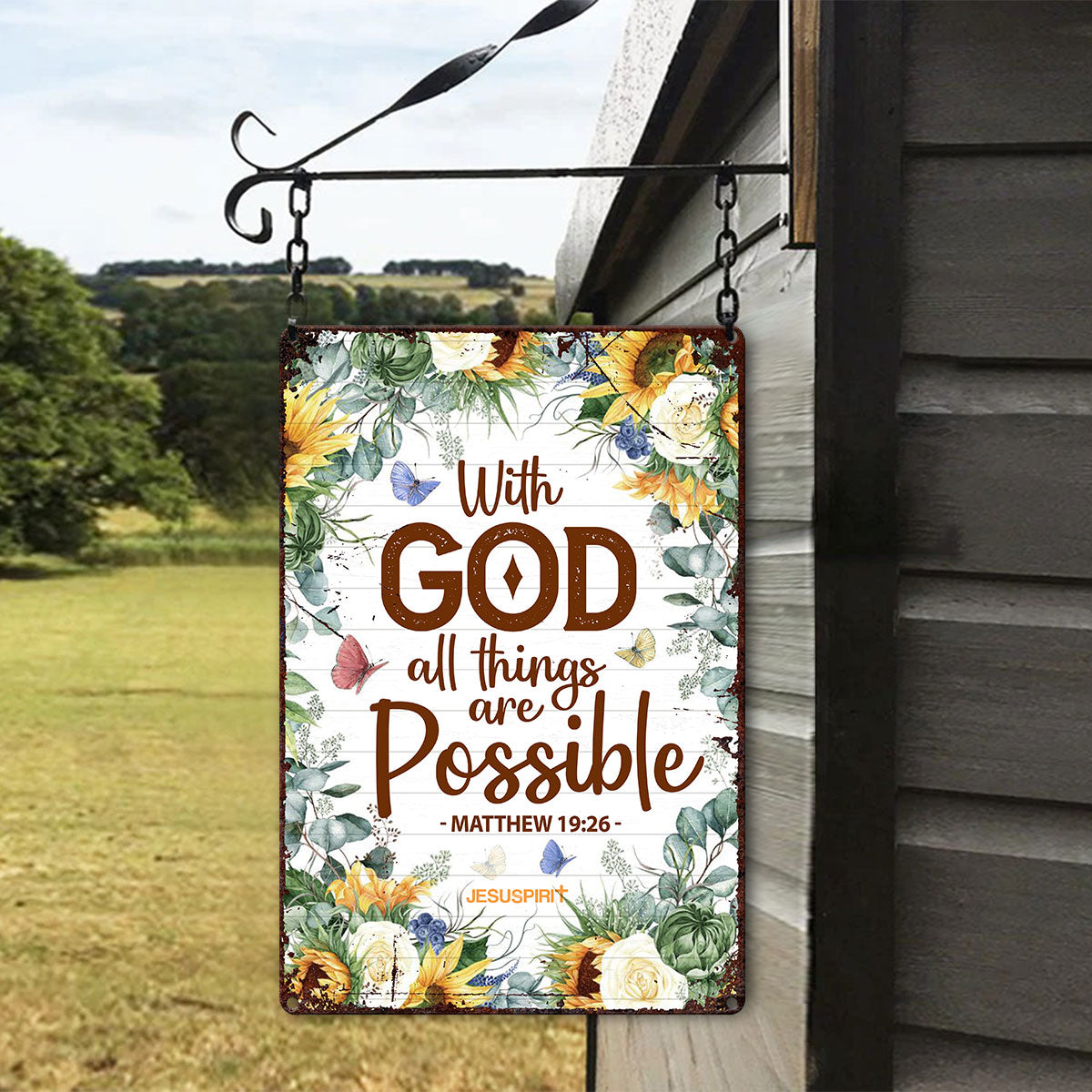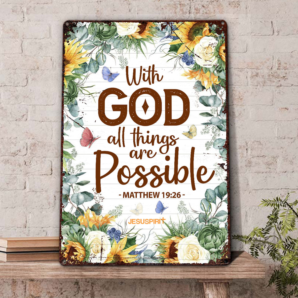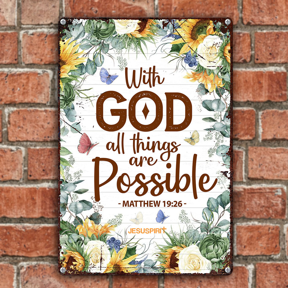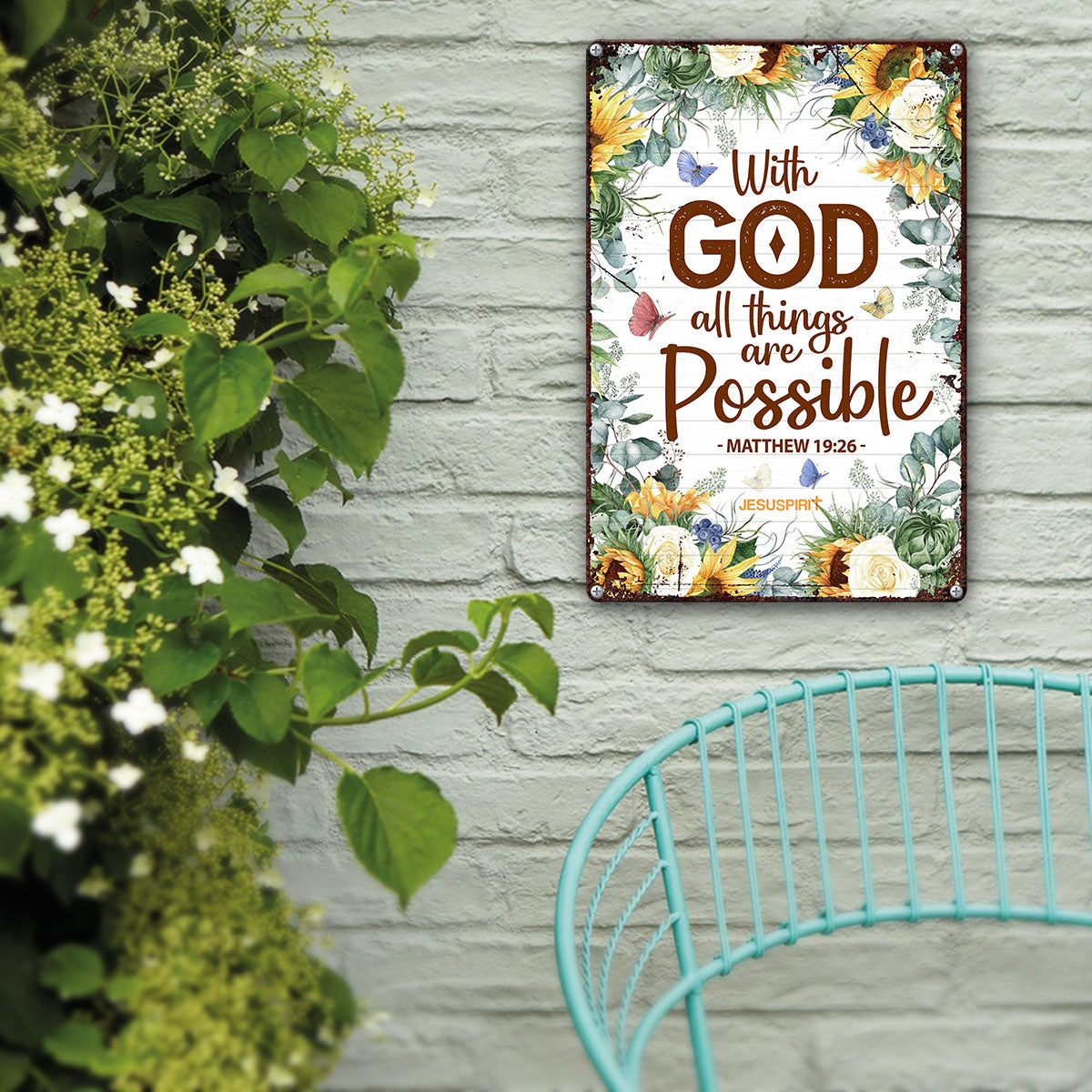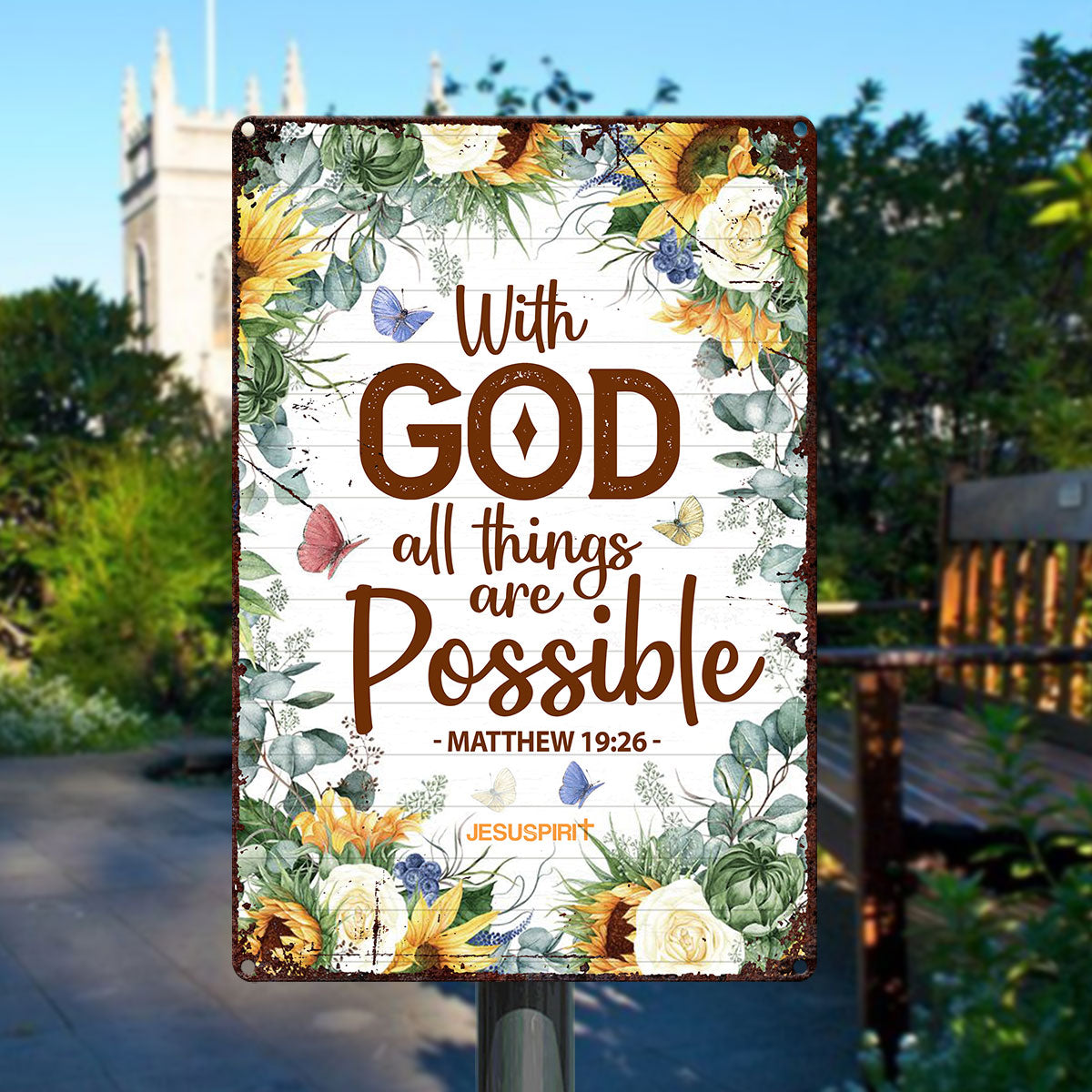 UX Jesus With God All Things Are Possible Matthew 1926 Lovely Sunflower Metal Sign NUH462